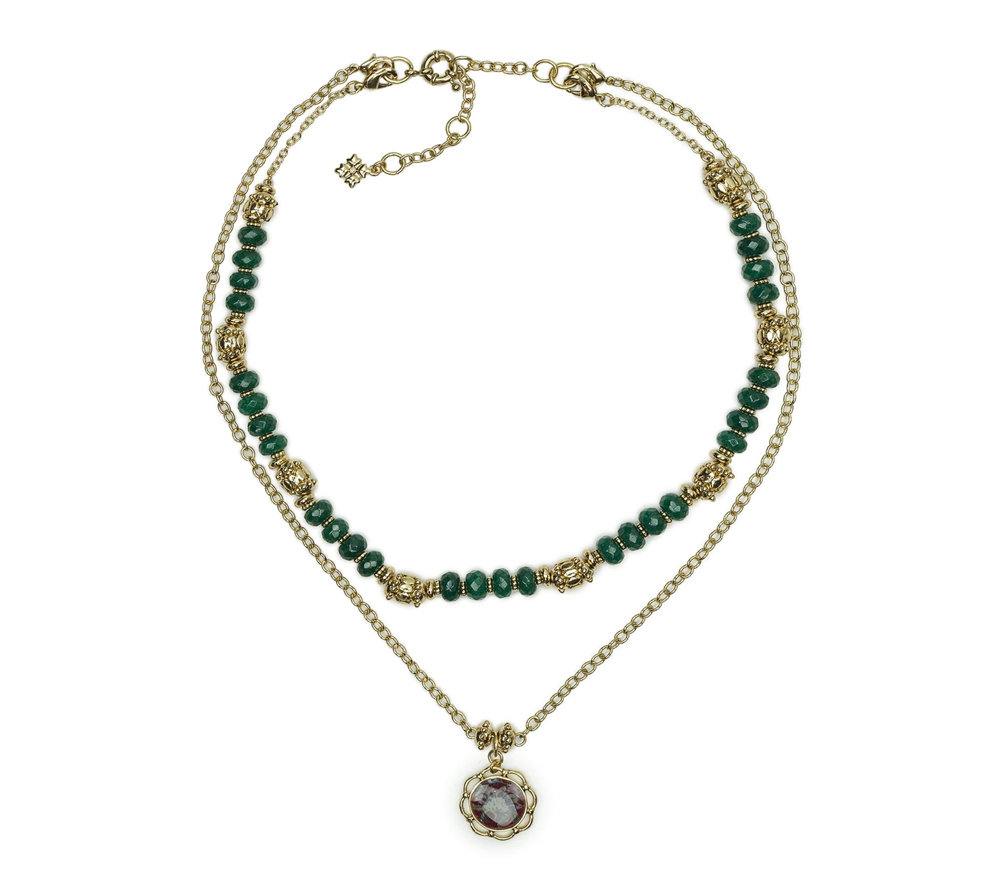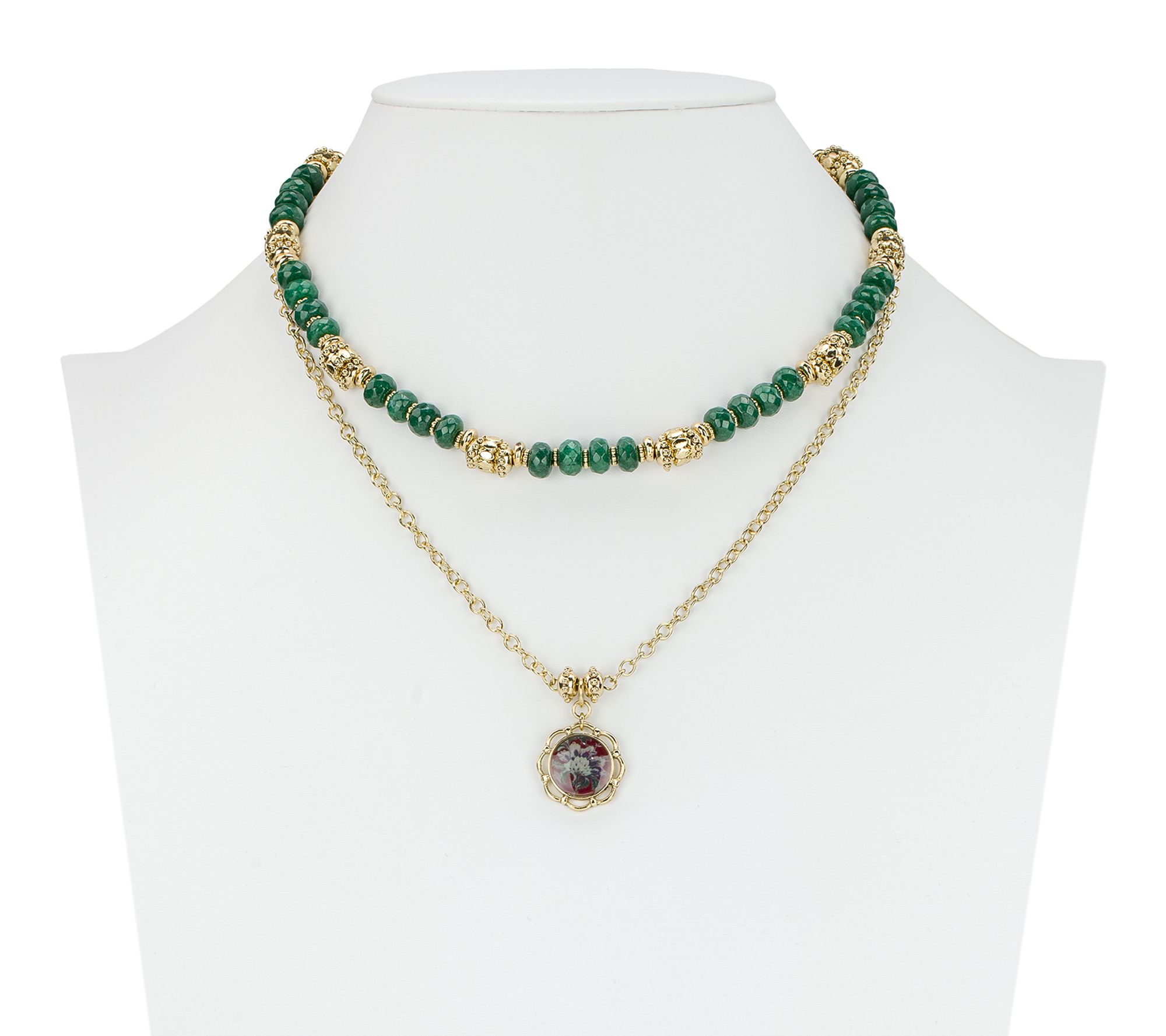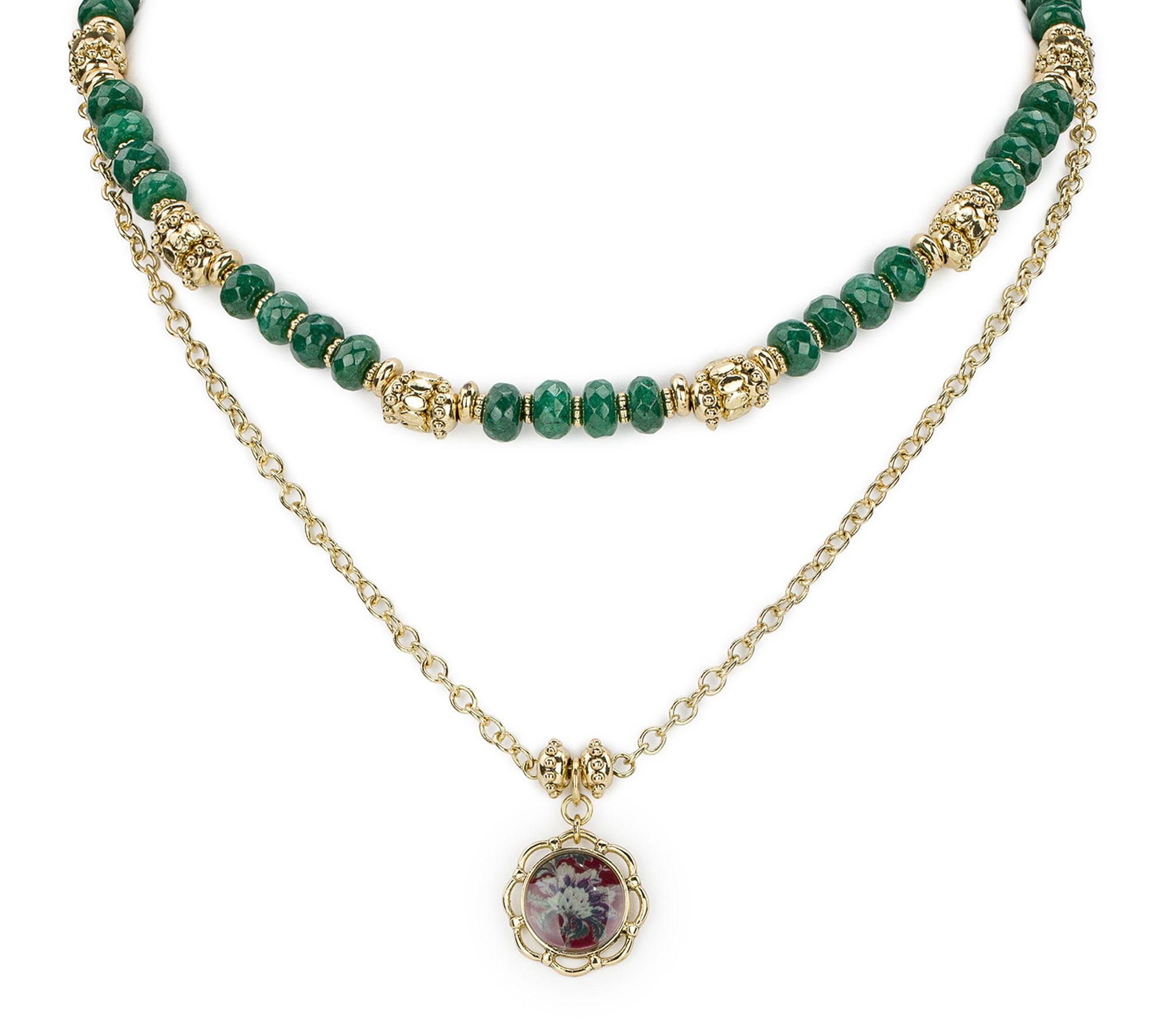 • Modular two-strand necklace with European Floral Tapestry pendant; beads; dynamic layered look