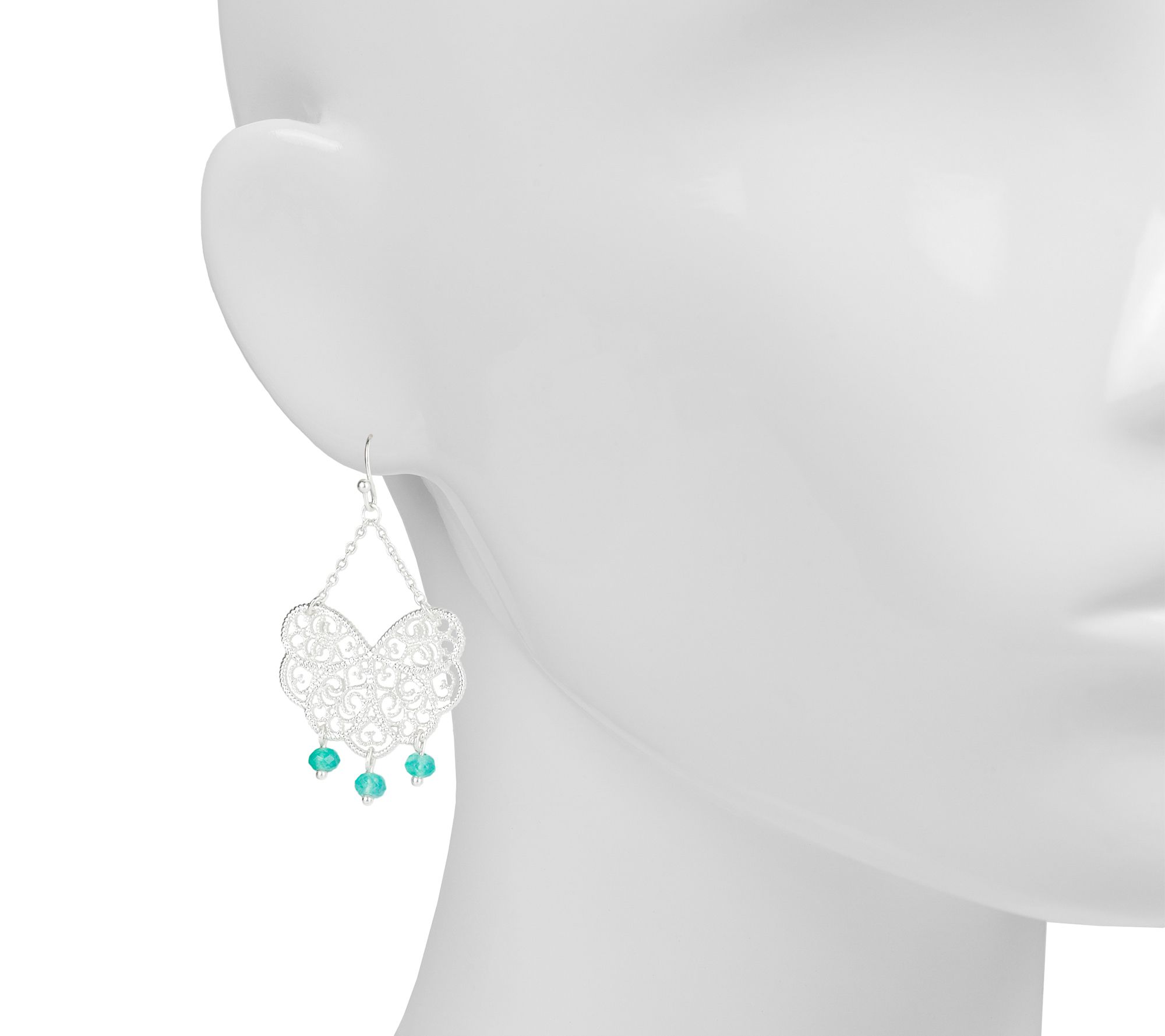 A playful yet posh accessory for any occasion, these Patricia Nash flutter dangle earrings combine intricate filigree silvertone brass and colorful glass beads. From Patricia Nash.