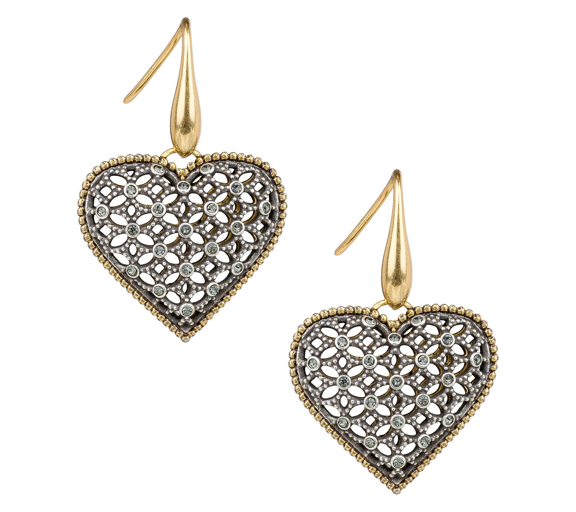 Adorn yourself with elegance found among these filigree heart drop earrings, showcasing a delicate lace-like design using a vintage filigree method. Perfect for dressing up or adding charm to a casual ensemble, these earrings effortlessly transition from day to night, making every occasion a special one. Whether you're out for coffee or enjoying an evening event, their intricate beauty enhances any outfit, inviting compliments along the way. From Patricia Nash.