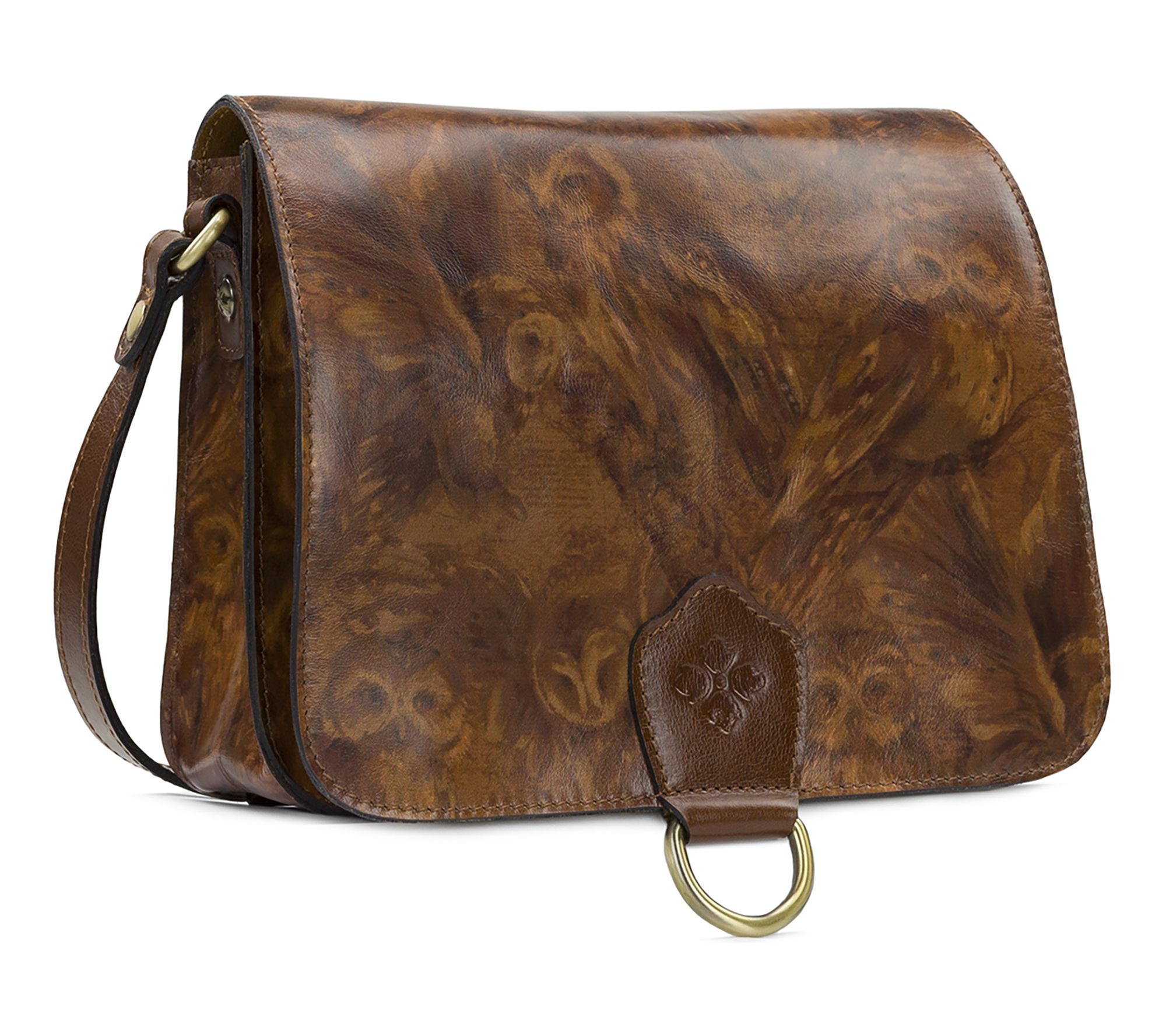 Beautifully crafted of leather, the Ilina crossbody bag from Patricia Nash combines versatility and a touch of whimsy. Boasting a stunning owl print, its fold-over flap and signature brushed brass hardware make this bag a stylish addition to any outfit. The adjustable strap allows you to carry it at your perfect length. From Patricia Nash.