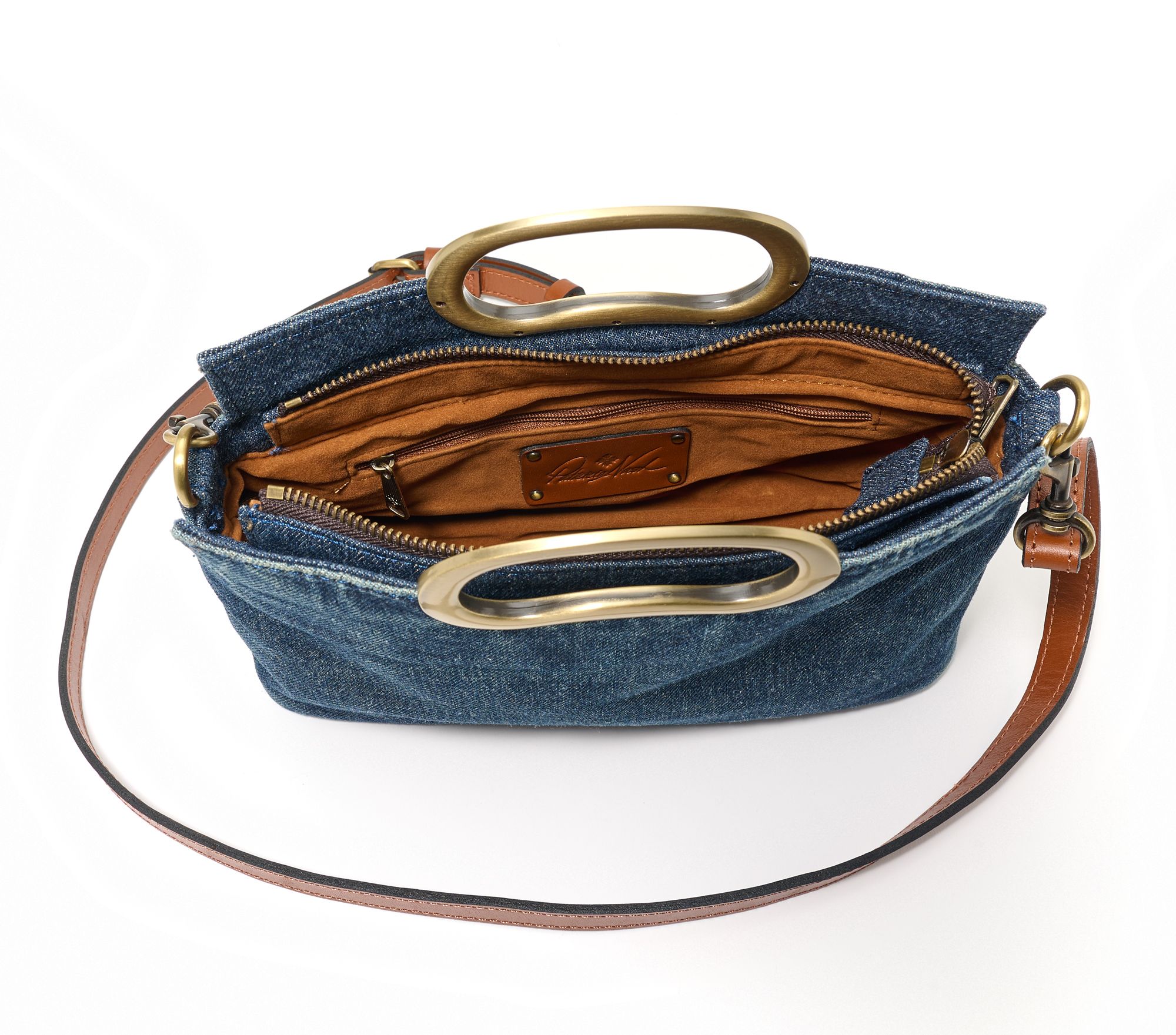 Designed for both style and versatility, this chic crossbody features a brushed metal handle and an adjustable/detachable strap that lets you change up your look as you move through your day. From Patricia Nash.