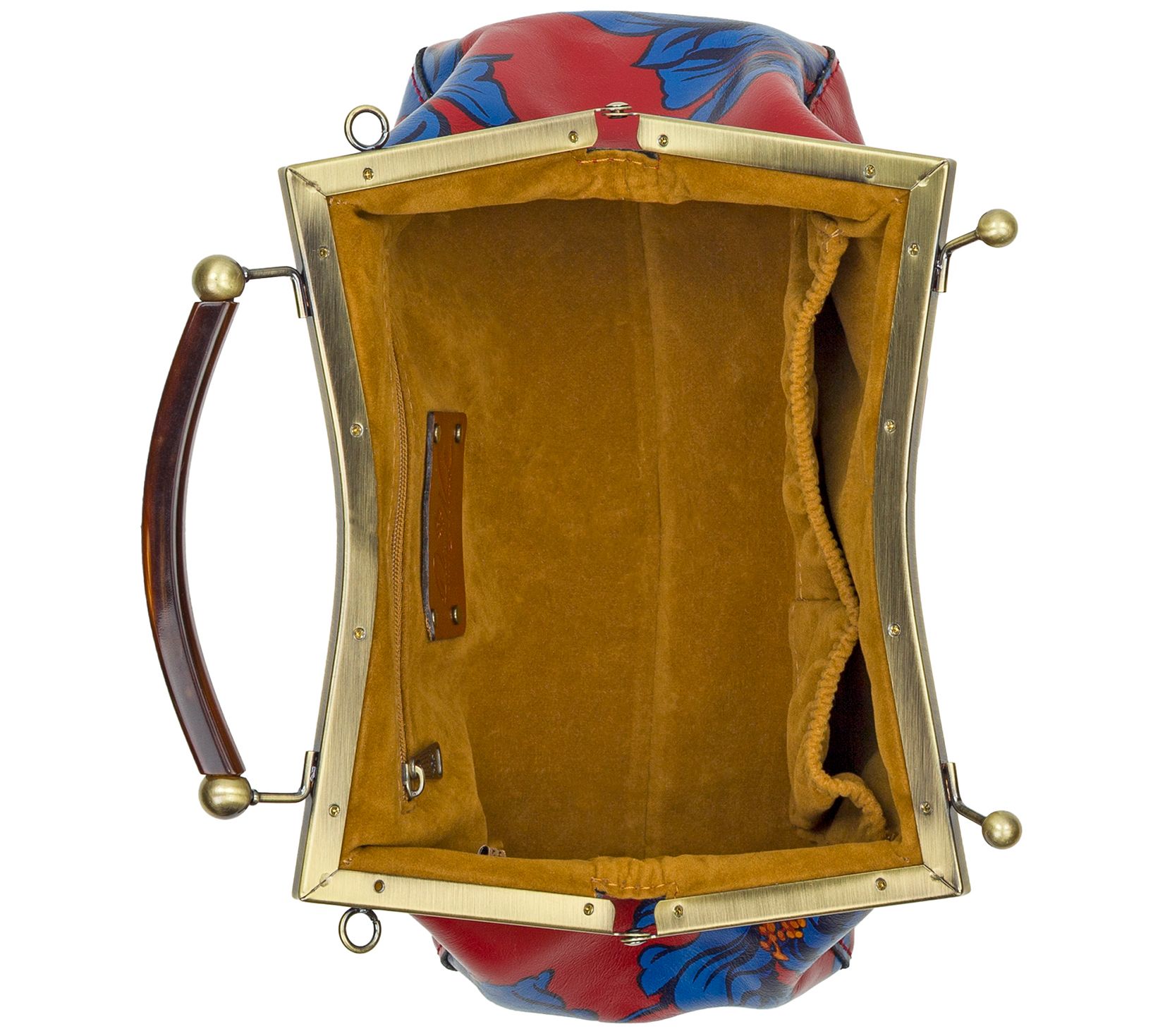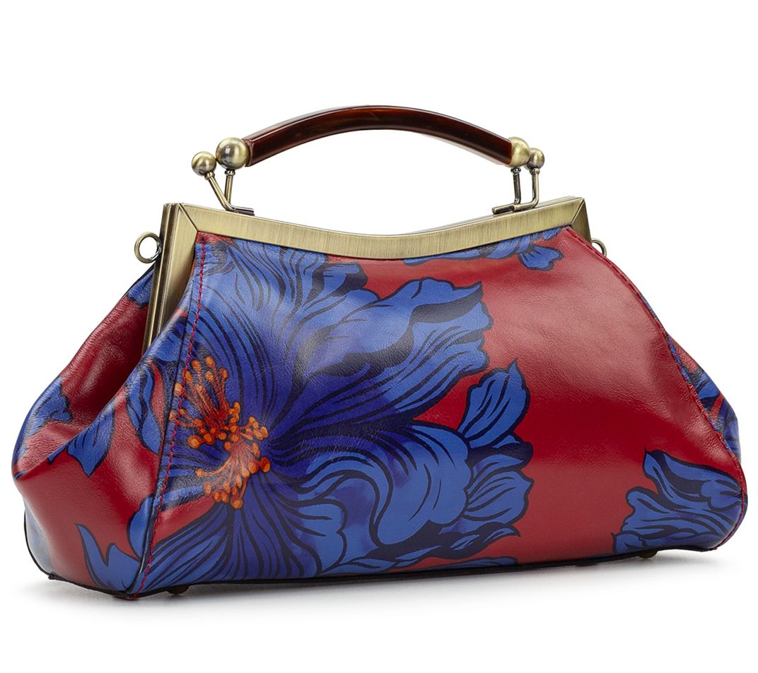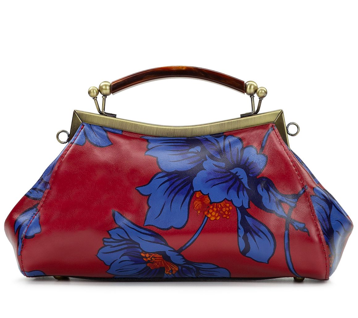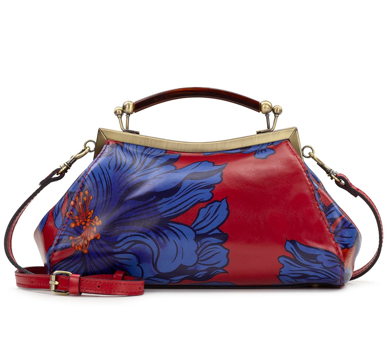 A day of exploring feels a little more special with this satchel, crafted from luxurious leather in the stunning Grecian Rose print. Featuring a chic single handle, twist-lock closures on each end, and space for just the essentials, this petite accessory brings effortless style to evenings out or artful afternoon brunches. The adjustable, detachable strap lets you wear it your way. From Patricia Nash.