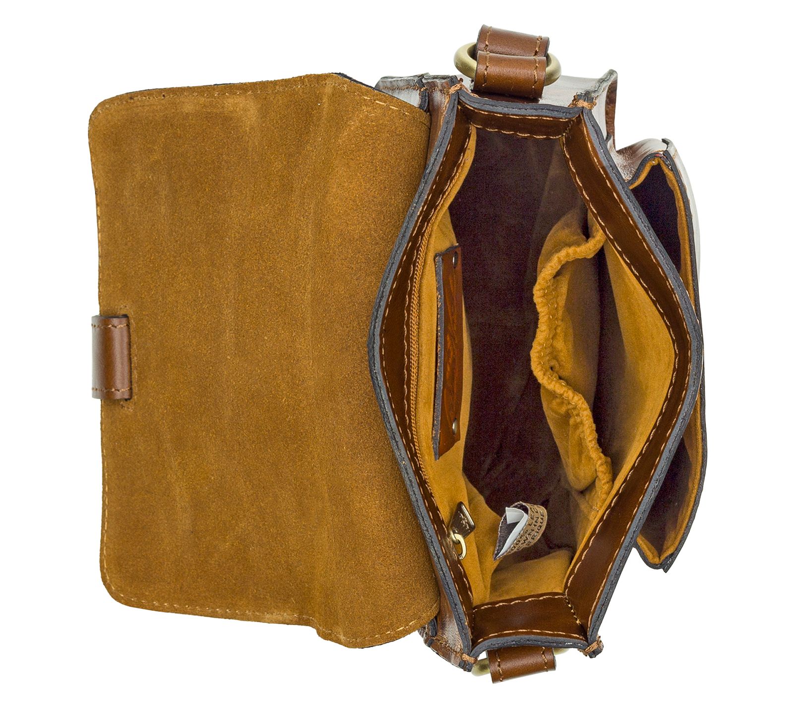 • Faux suede lining, interior zip pocket, two slip pockets