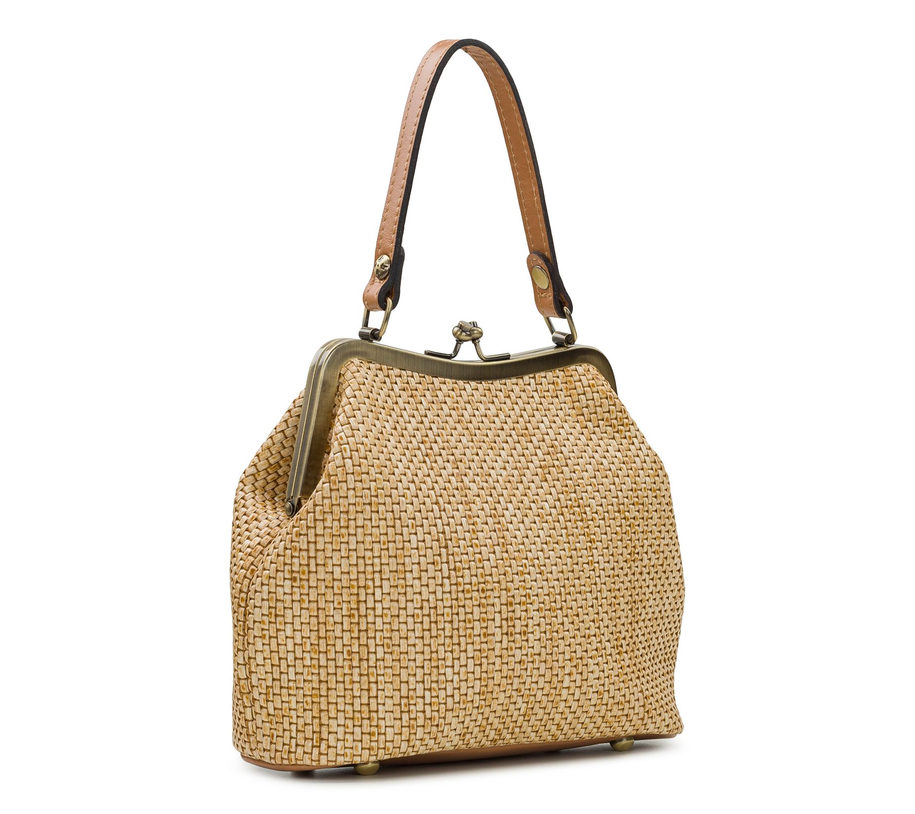 With its stylish design and versatile construction, Patricia Nash's Laureana Frame Satchel is a must-have accessory for any fashion enthusiast. The burnished woven design, crafted from raffia, adds a touch of sophistication, while the detachable chain and single handle offer multiple carrying options to suit your mood. Perfect for day-to-night transitions, this satchel seamlessly blends elegance with practicality. Comes with a beautiful Greek Floral scarf, making it an even more captivating choice. From Patricia Nash.
