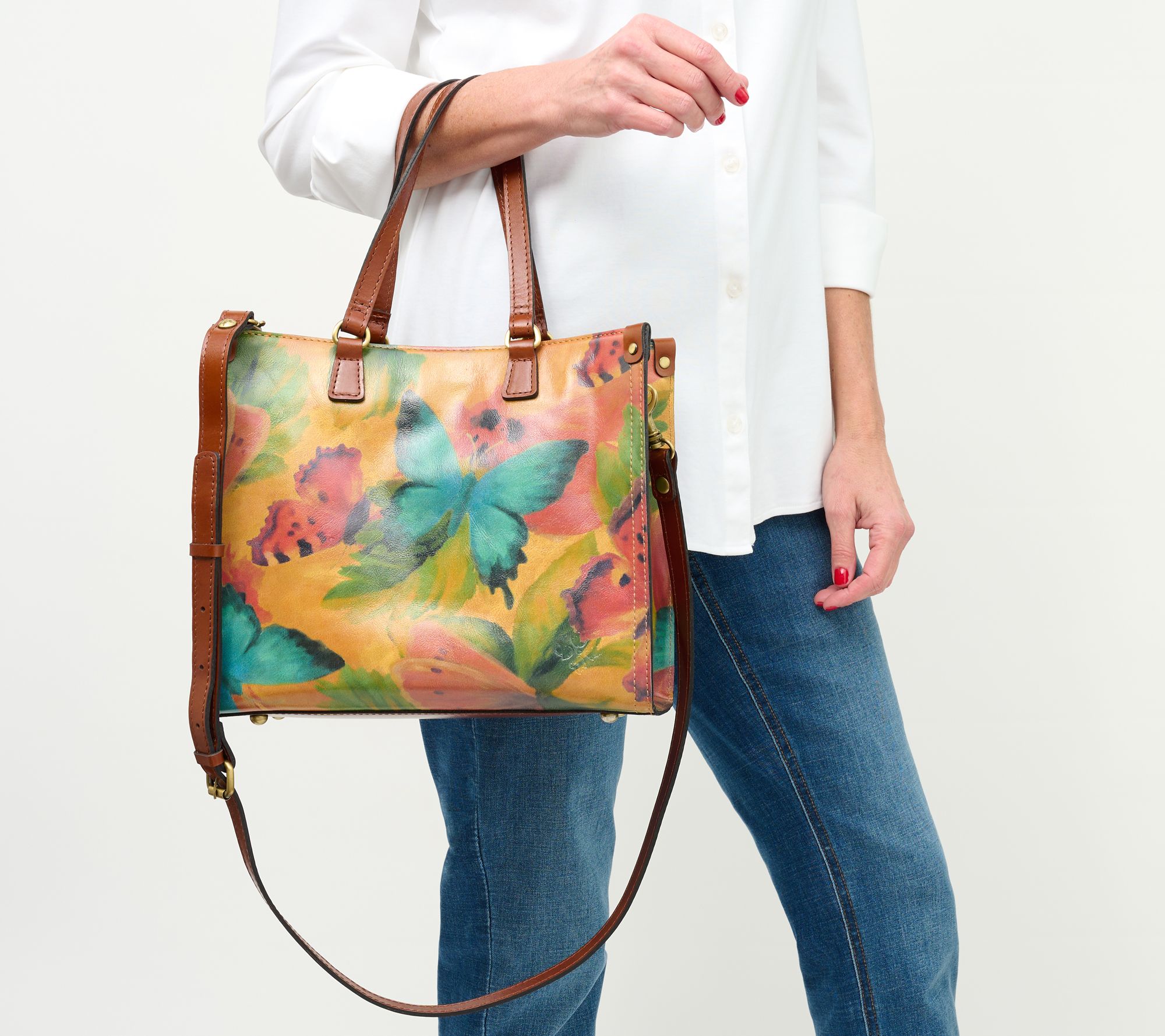 Spring has (finally) sprung! It's time to shed winter's baggage and accessorize sunny 'fits with a fresh pursepective -- like Ava. This elevated handbag gives alll the designer feels with a nod to thoughtful functionality. The leather tote offers crisp architecture with plenty of easy-reach compartments, making it a covetable piece of arm candy ideal for return-to-office workdays, errand-filled weekdays, and plenty of coffee shop stops along the way. Tote it all in this medium-sized satchel by the top handles or crossbody style (because hands-free means hello, latte!). From Patricia Nash.