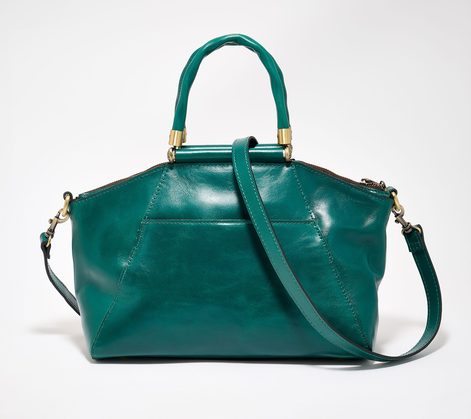This leather satchel works for busy workdays or relaxed weekends, offering a combination of top handle carry and a long adjustable strap for shoulder wear. Store your daily essentials in organized pockets inside and out, and enjoy easy access with a magnetic snap closure on the exterior slip pocket. From Patricia Nash.