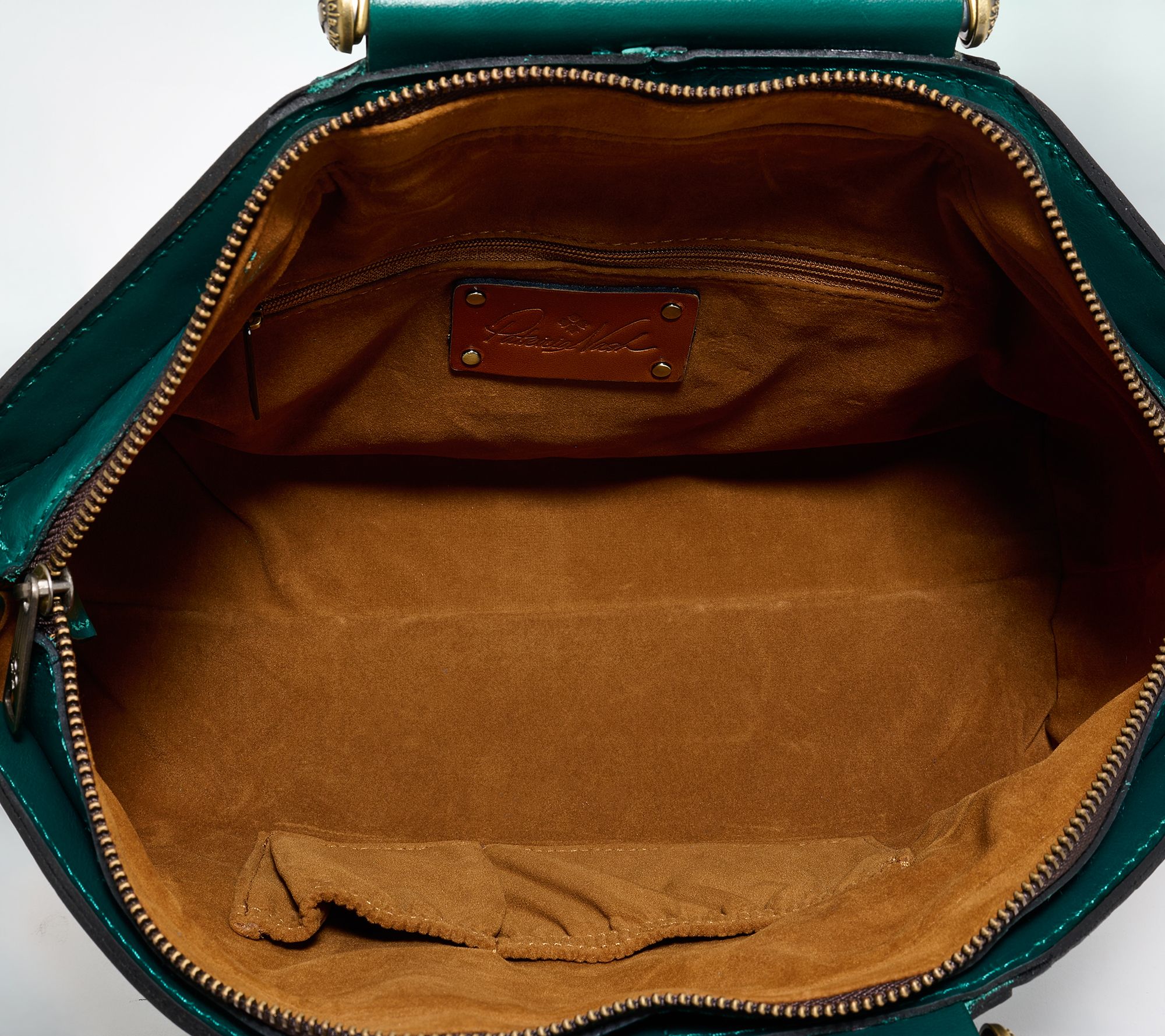 Detachable and adjustable shoulder strap, top handle, exterior slip pocket with magnetic snap closure