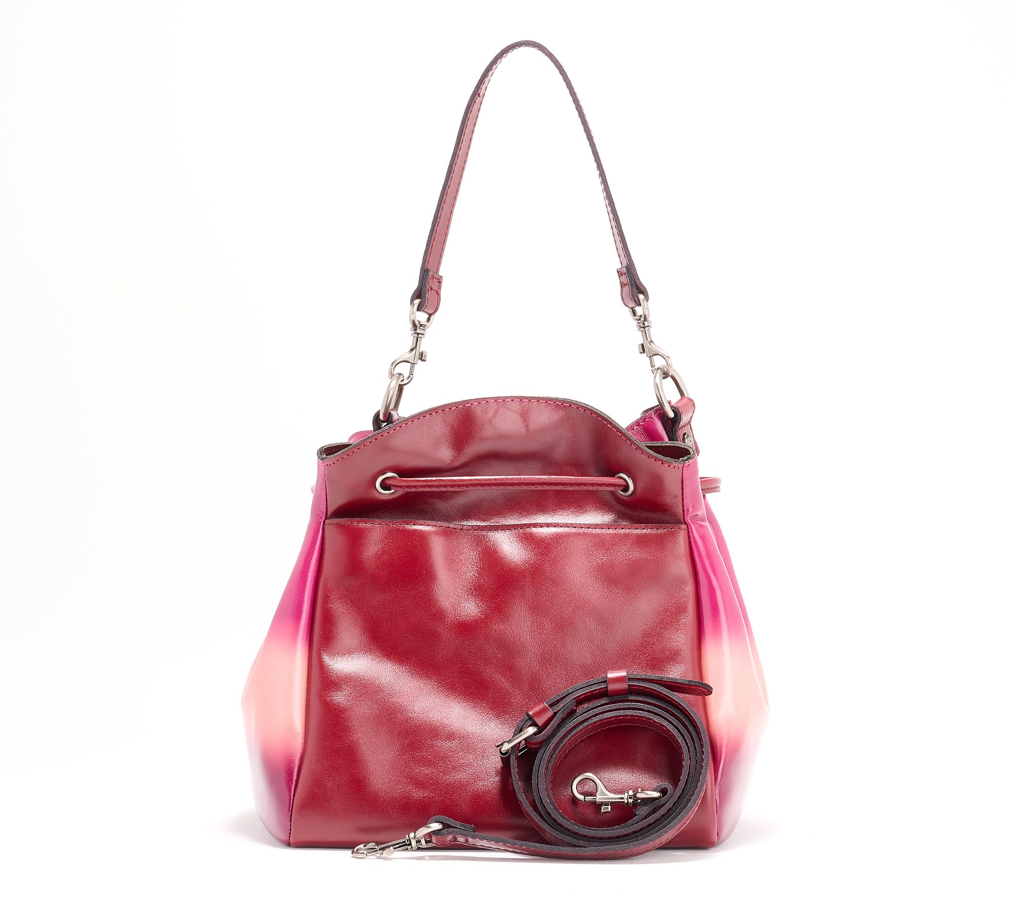 The Elora drawstring bucket bag provides a fun and flirty silhouette for your everyday use. Crafted in supple ombre leather, it makes a strong style statement wherever you go. Make this your go-to bag for the season -- multiple pockets provide plenty of interior organization. From Patricia Nash.