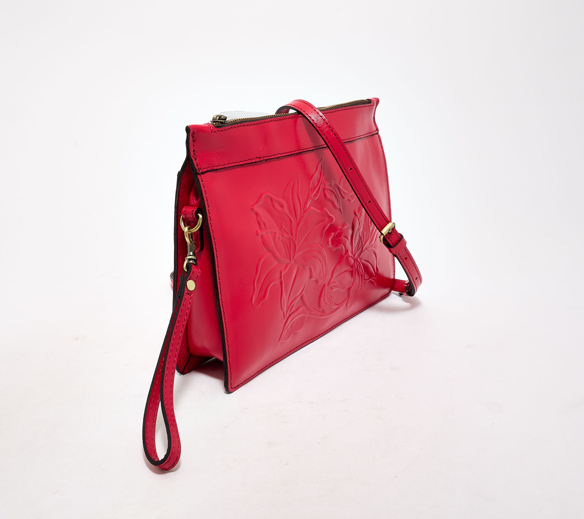 This gorgeous leather crossbody offers flexible style options, making it easy to switch from errands to evenings out. Use the adjustable crossbody strap for hands-free wear or remove it and attach the wristlet for a chic grab-and-go clutch that keeps your items organized in thoughtfully arranged pockets. From Patricia Nash.