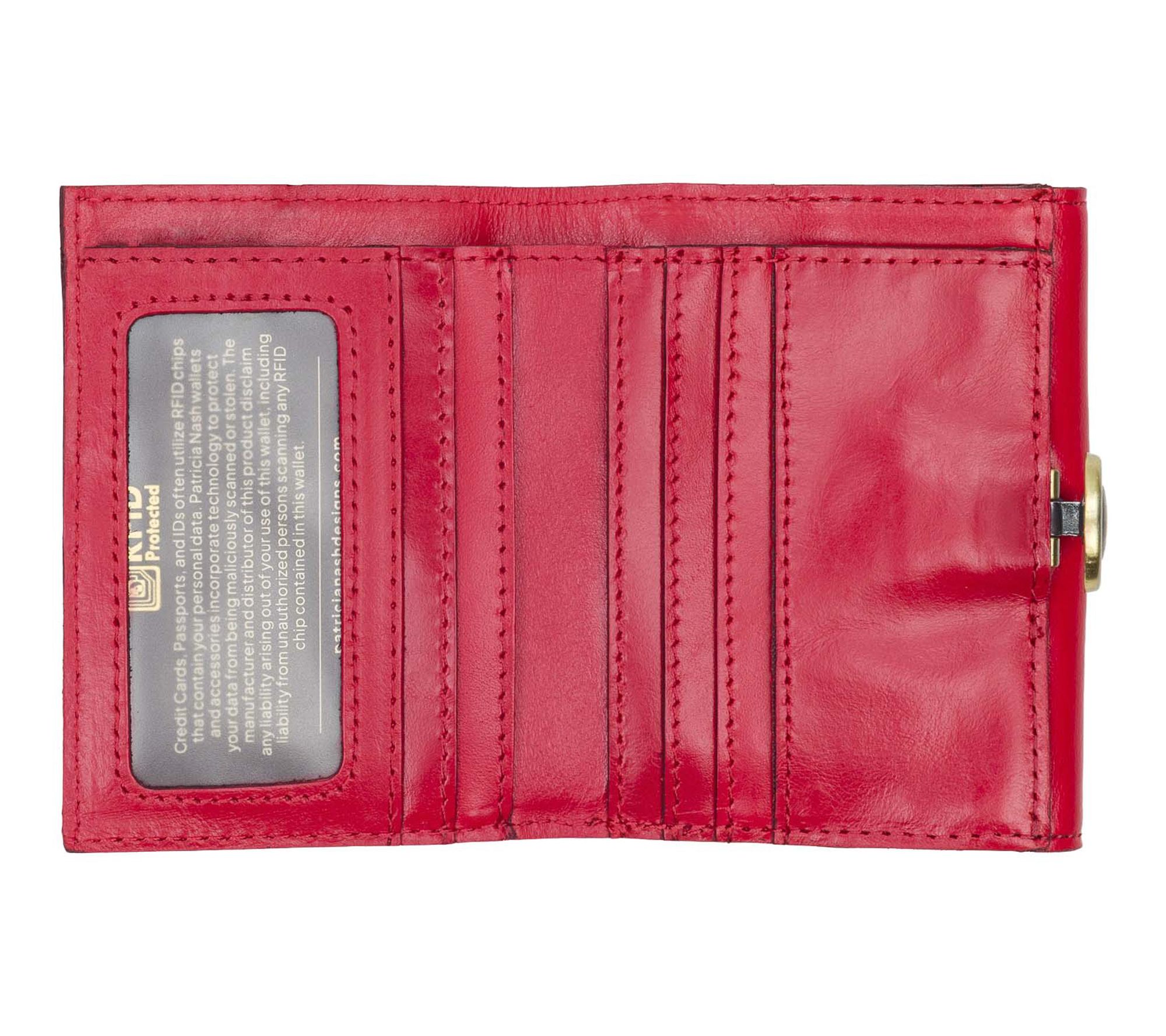 Stroll from market days to memorable evenings with the Lunel wallet, a stylish companion crafted to simplify your essentials. Its vintage-distressed leather and signature brushed brass hardware bring a touch of character, while thoughtfully designed slots and pockets keep everything you need beautifully organized. From Patricia Nash.