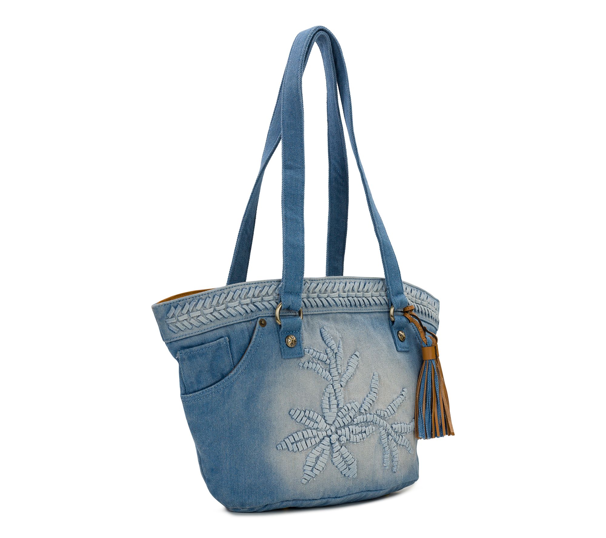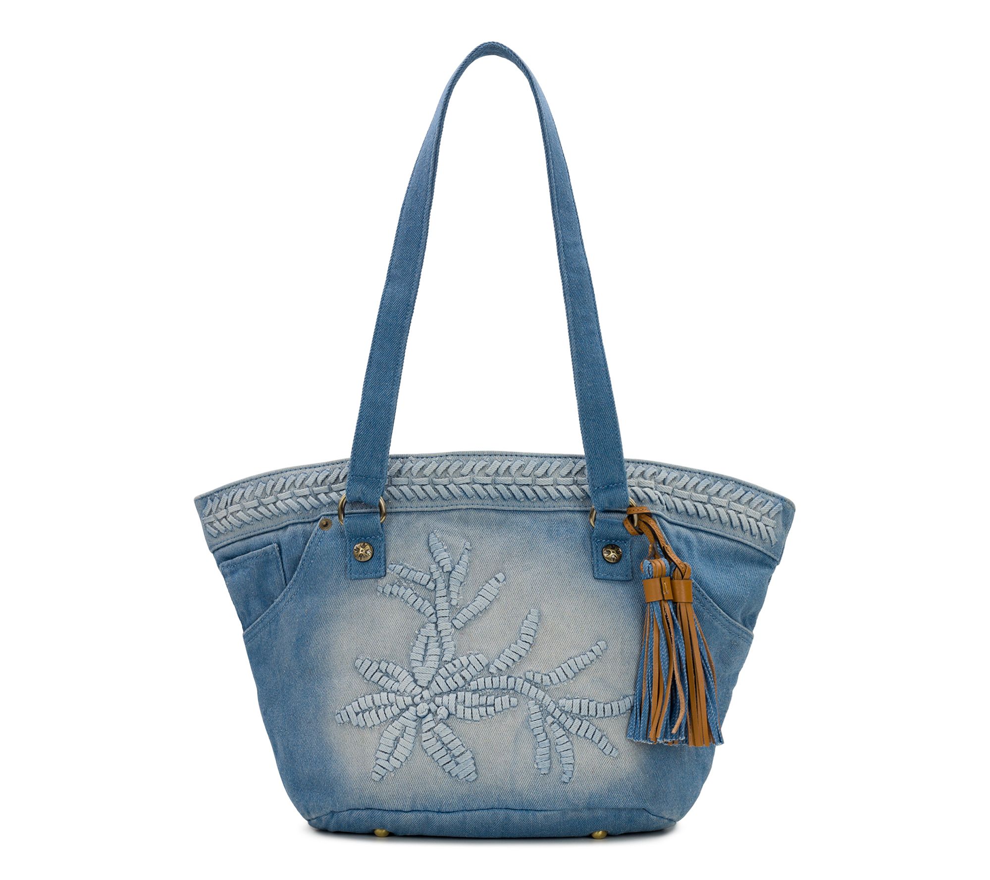 Patricia Nash Marconia Lacing Denim Tote with Leather Tassel