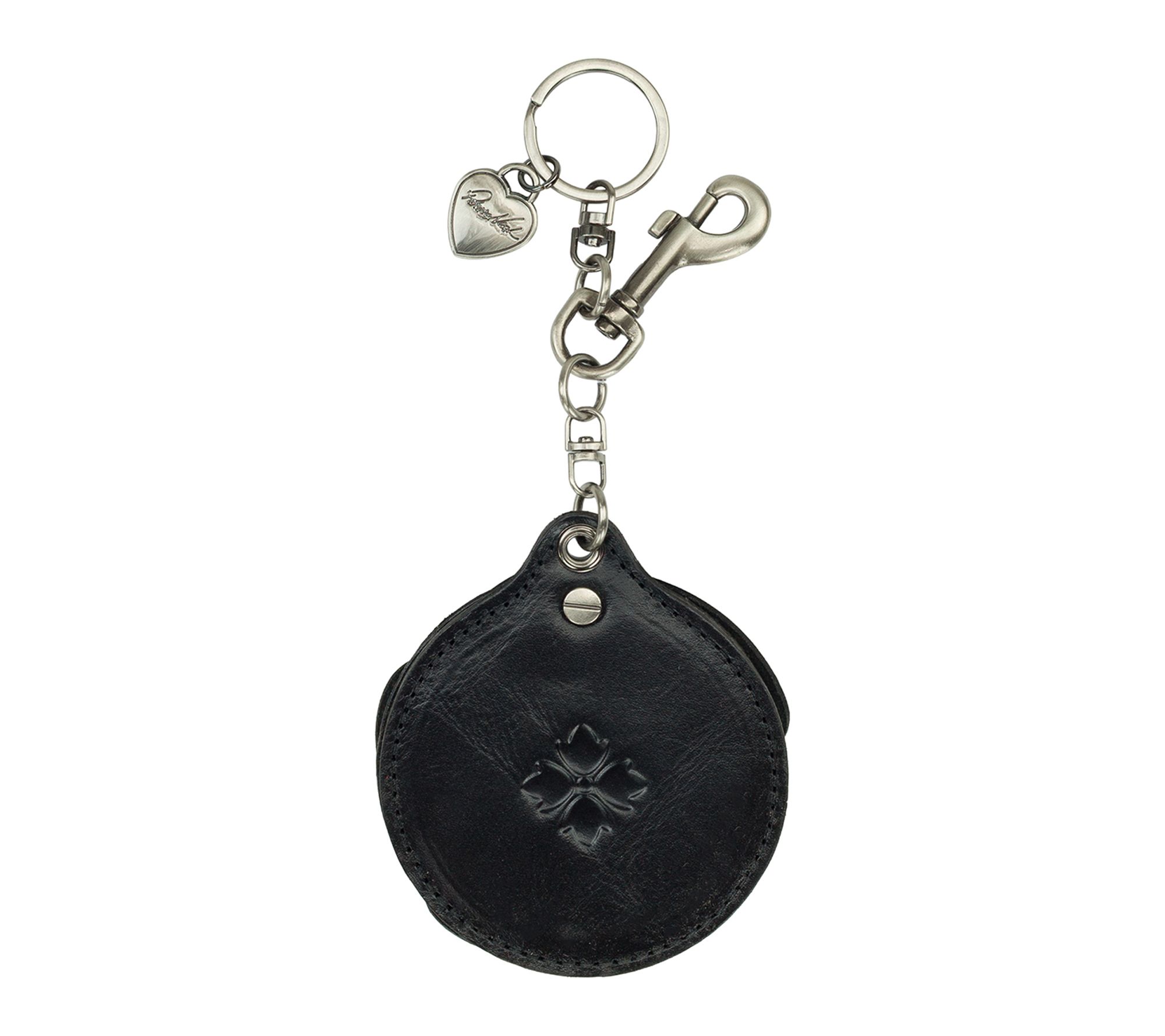 Add a charming whisper of color to your favorite tote or handbag with this delightful bag charm. Crafted in beautifully sculpted leather, the clever design conceals a hidden mirror -- ready to help you refresh your look or find your keys in a flash, whether you're heading to brunch or running errands. From Patricia Nash.