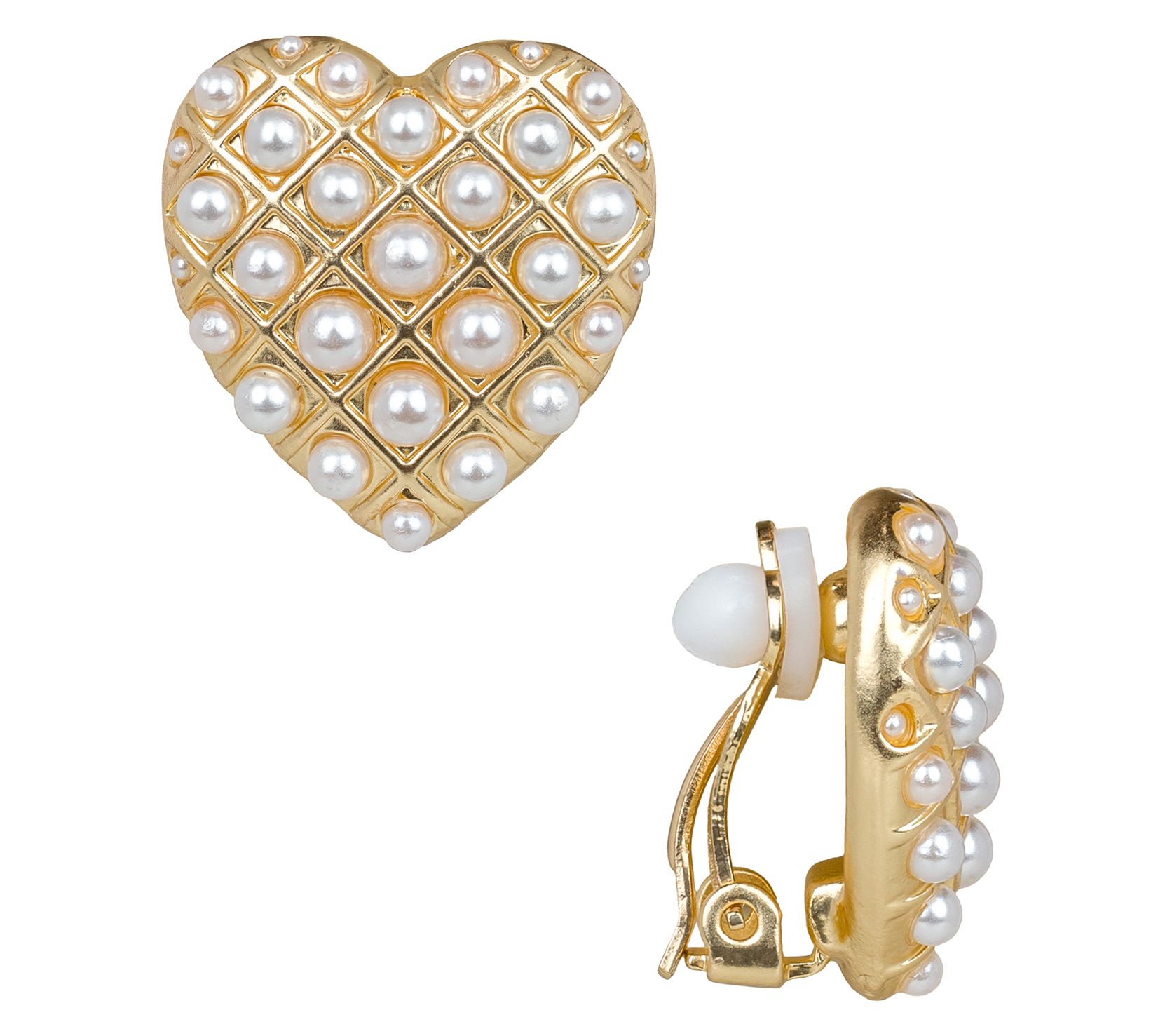 Patricia Nash Simulated Pearl Heart Button ClipOn Earrings