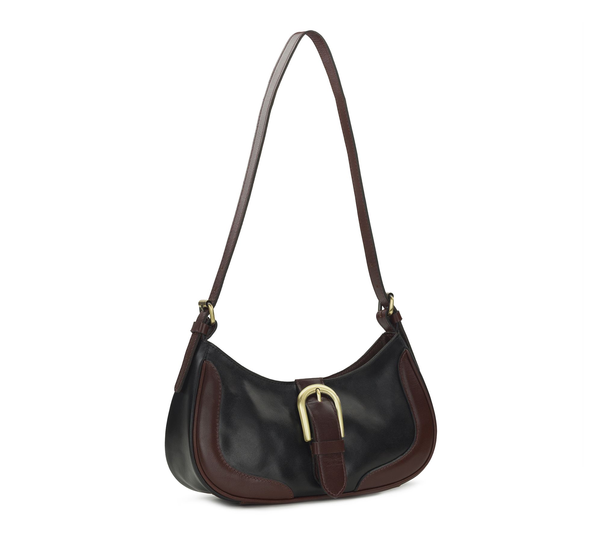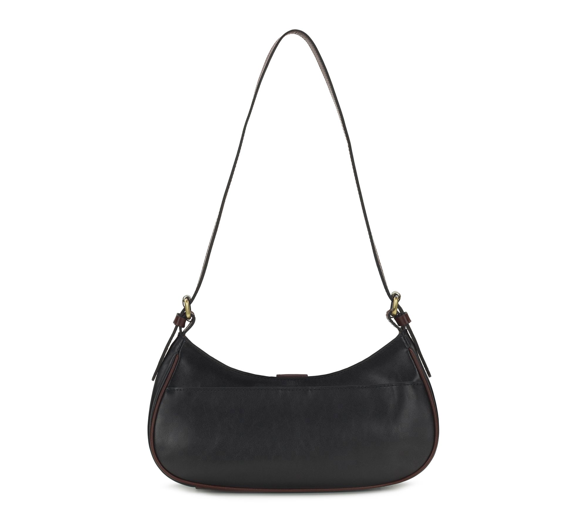 Make every outing feel like a style moment with this chic baguette shoulder bag, crafted in luxe leather with bold colorblocking and signature brushed brass hardware. The adjustable strap and compact silhouette make it easy to tuck under your arm, while pockets inside and out keep your essentials in reach whether you're heading to brunch or a night out. From Patricia Nash.