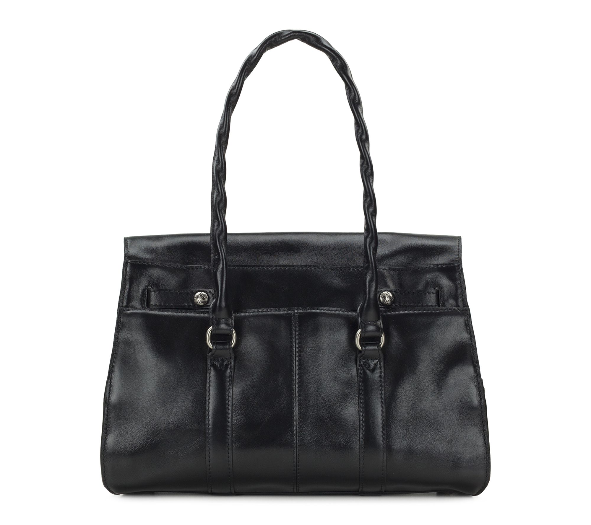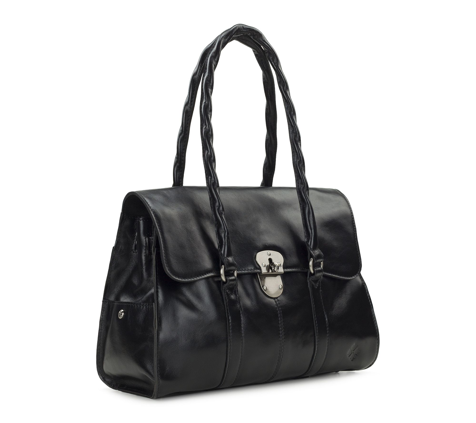 Make a polished impression on every occasion with this classically chic Vienna satchel. Its lush leather exterior, twisted rope double handles, and clever twist-lock closure give your look a stylish edge while spacious pockets and a detachable strap keep you organized, whether you're headed to brunch or a busy day at work. From Patricia Nash.