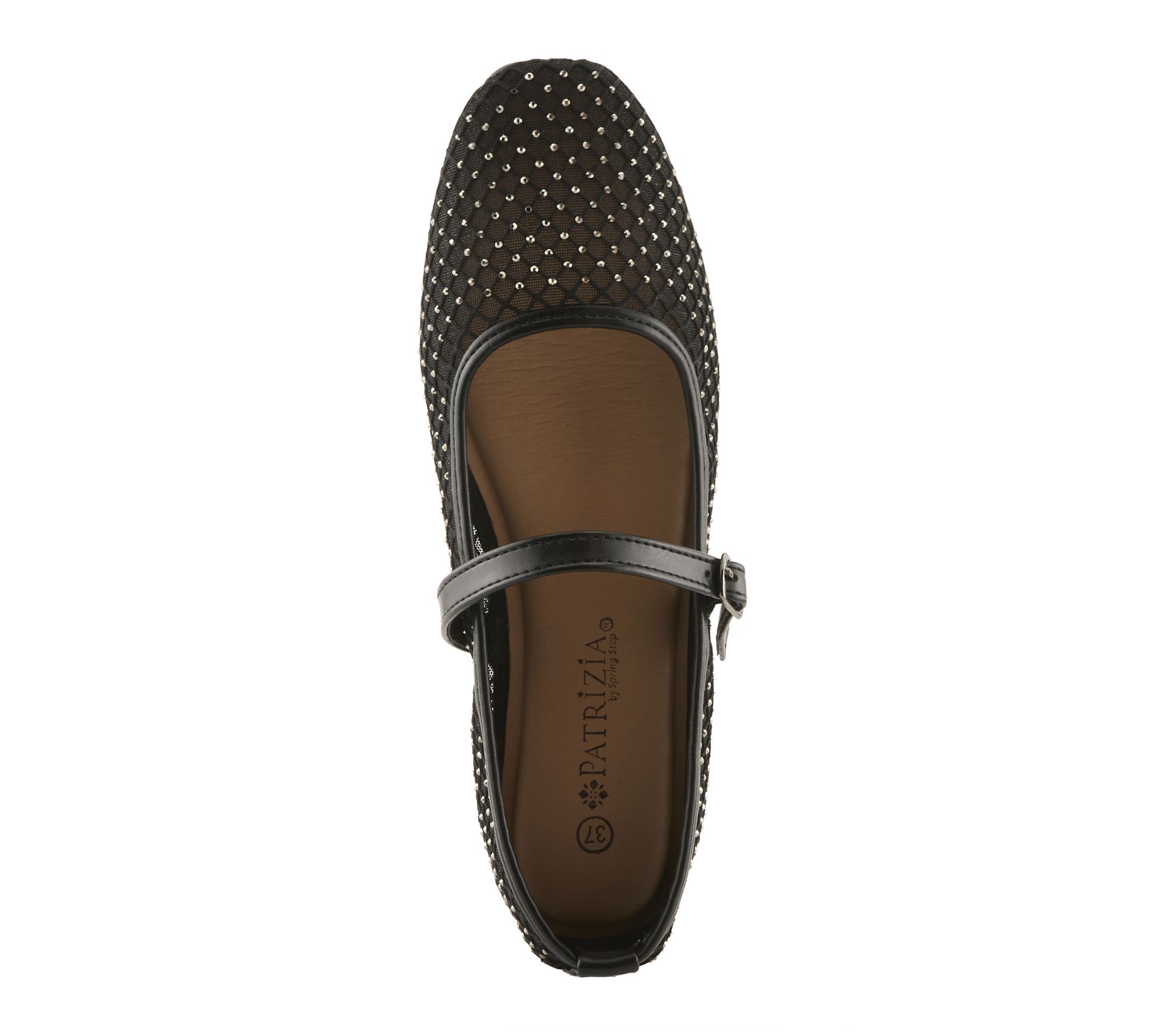 Chic shimmer meets day-to-night comfort in these ballet flats, where breathable mesh, twinkling crystal accents, and a dainty strap create versatile style for anything from brunches to evenings out. Enjoy the blend of feminine charm and modern flair with a rounded toe and low-profile heel designed for all-day wear. From Patrizia by Spring Step.