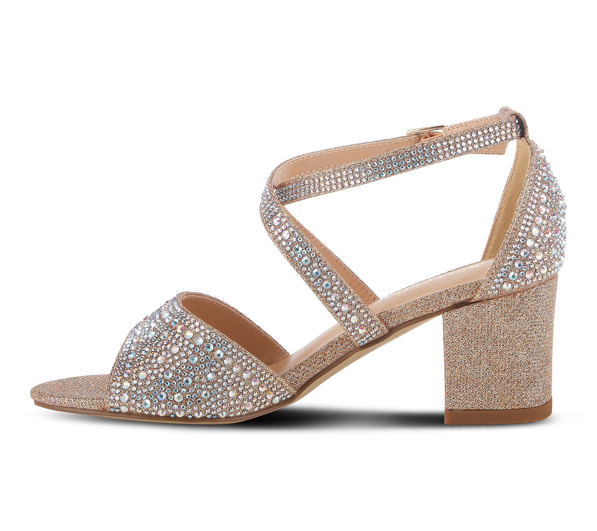 Sparkling nights out and chic daytime looks are both within reach when you slip on these dress sandals. Elegant criss-cross straps with tonal rhinestones catch every light, while a comfortable block heel and padded insole make every step effortless. From Patrizia by Spring Step.
