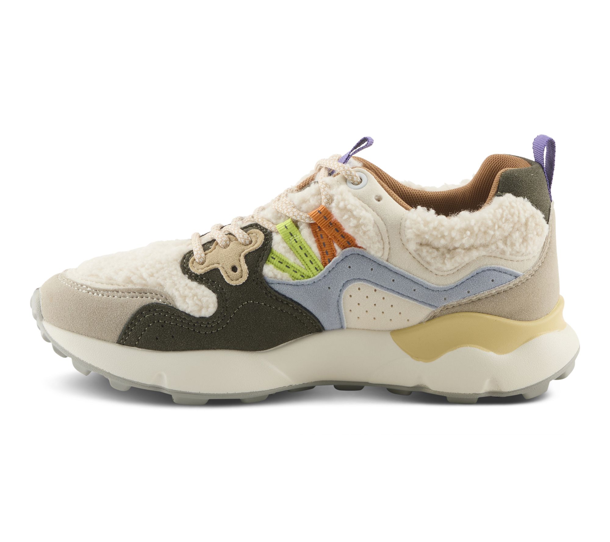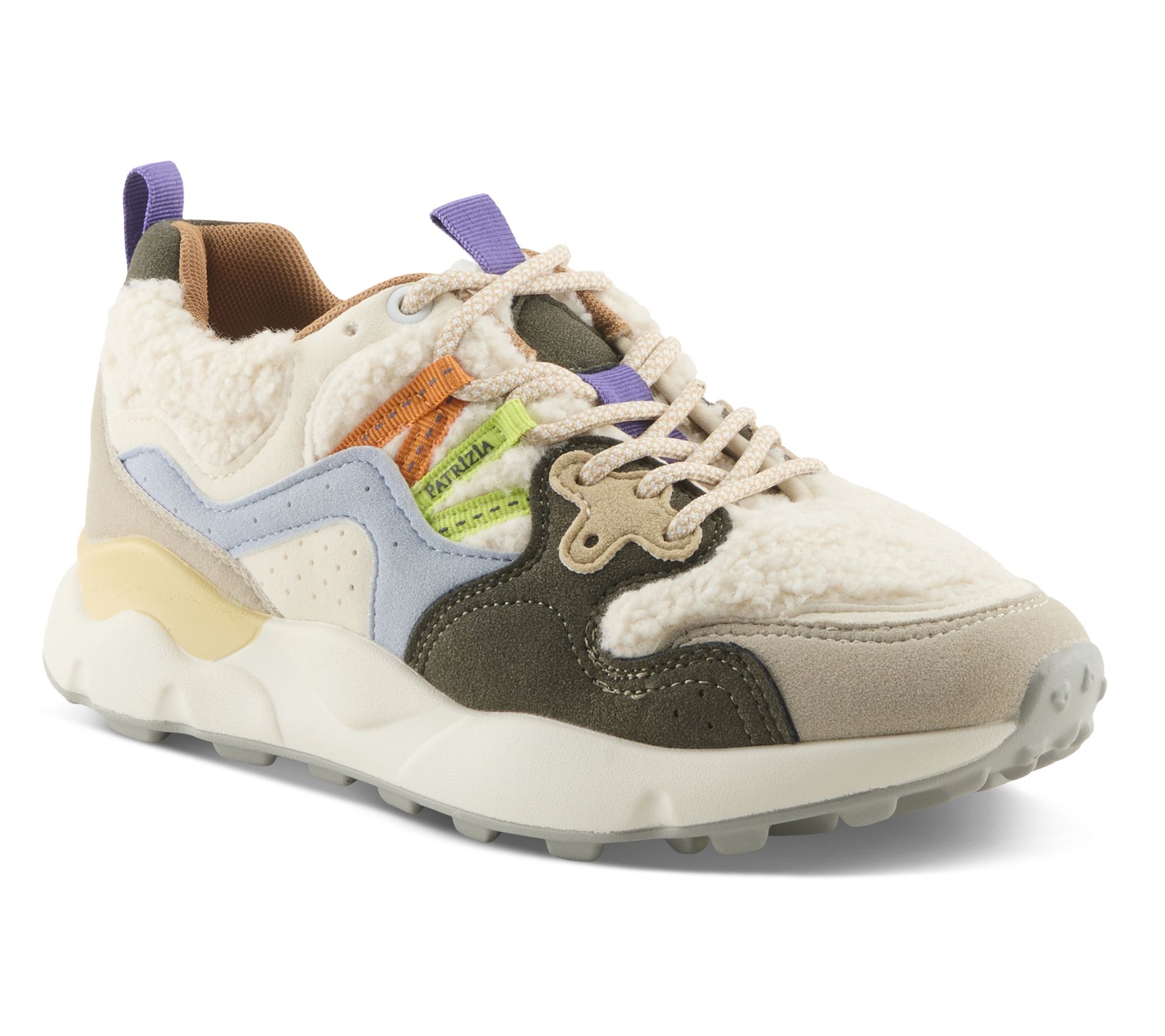 Lace-up closure; round toe; vibrant multi-color upper with playful detailing