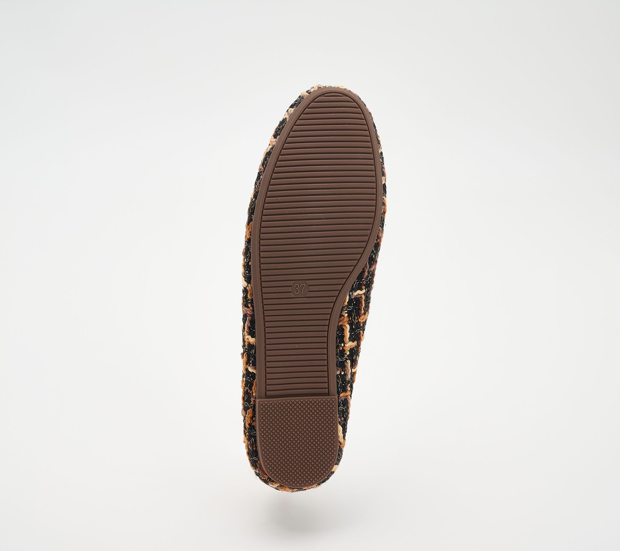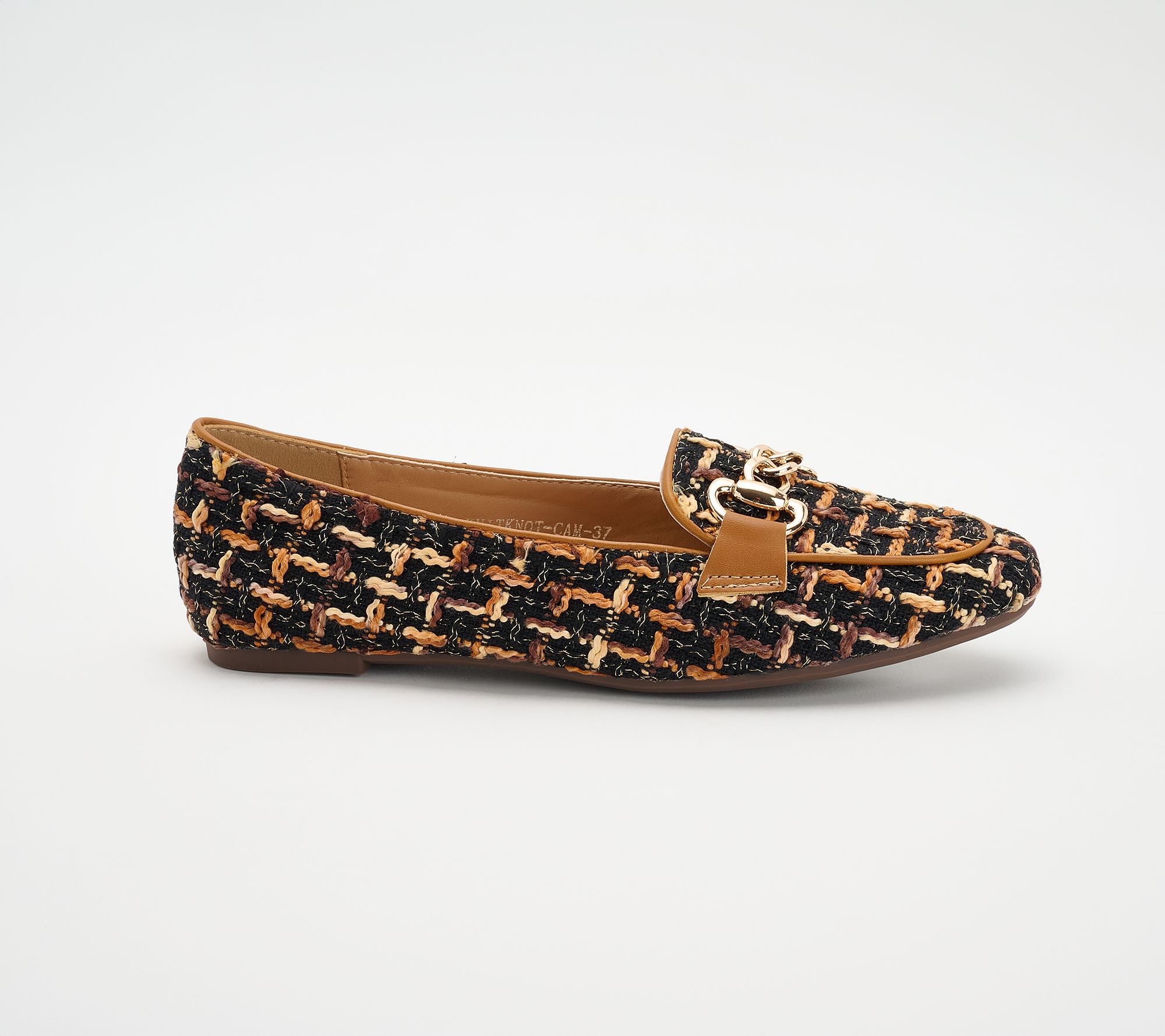 Smart and chic, these lovely loafers feature a boucle material with tonal piping. The polished goldtone chain hardware adds a sophisticated finishing touch. From Spring Step.