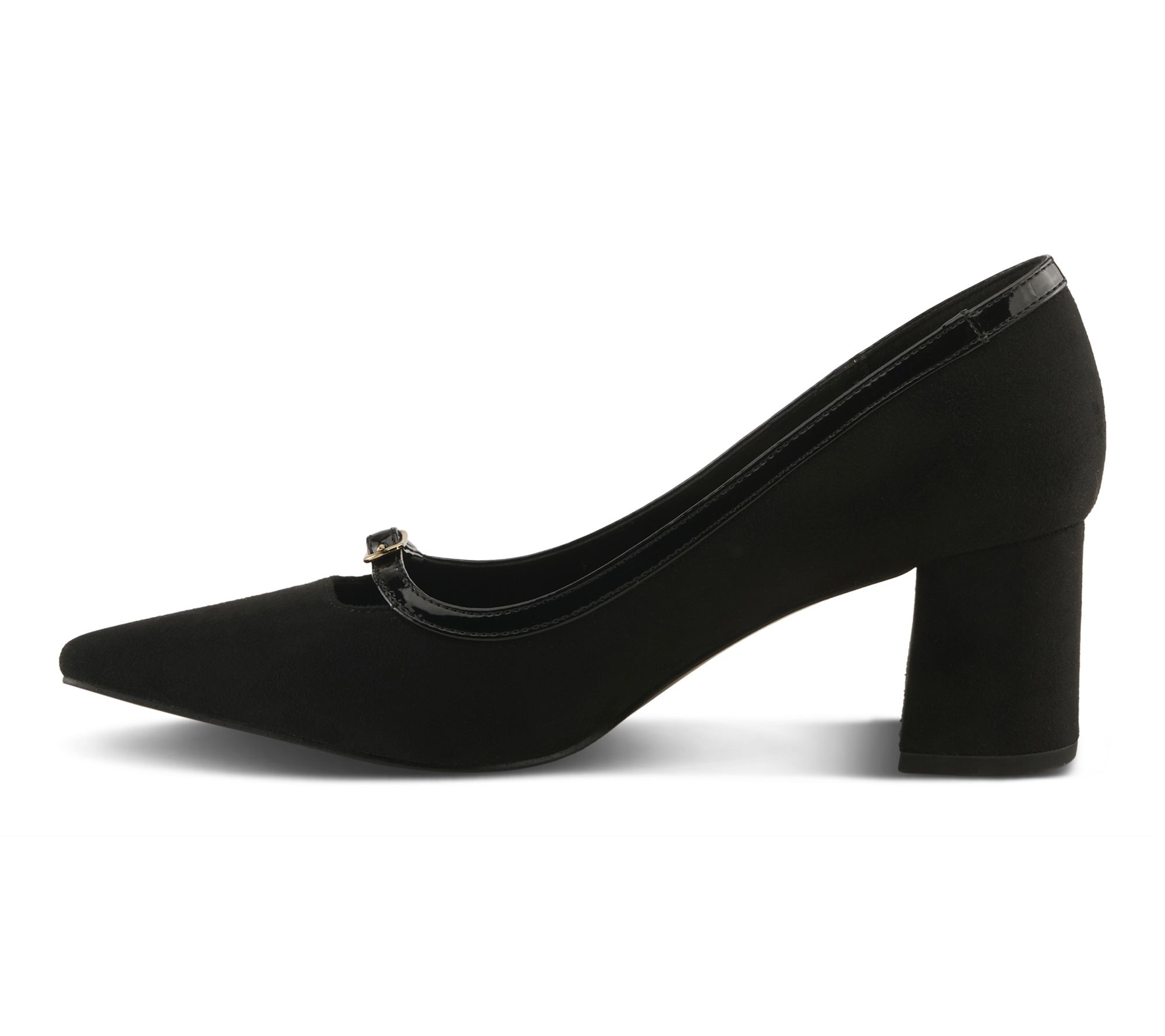 Turn heads wherever your day takes you in these block heel pumps, featuring glossy patent trim and an elegant buckle detail. The pointed toe adds a sharp, modern finish while the cushioned insole keeps you comfortable from early meetings to evening plans. From Patrizia by Spring Step.