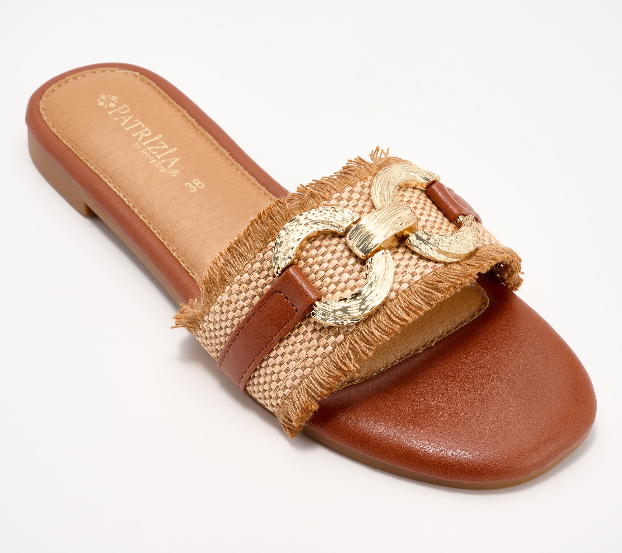 Searching for effortless sophistication? Look no further than these exquisite slide sandals. They add a little drama to casual gatherings and laid-back celebrations with their stunning woven upper and chic fringed edges. From Patrizia by Spring Step.
