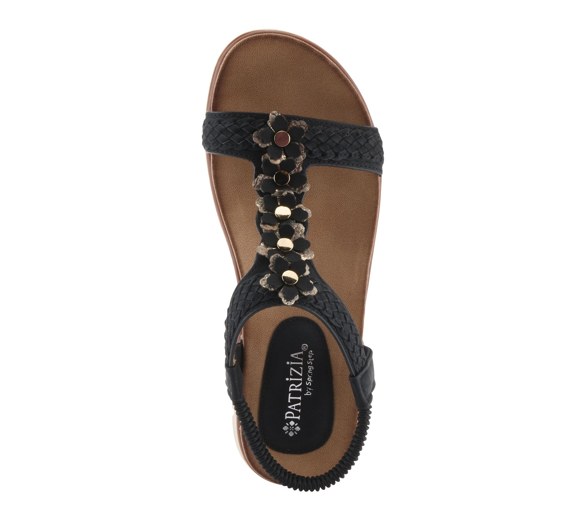 Slip-on sandals add instant polish to your sunny-day lineup, whether you're meeting friends for brunch or roaming your favorite city market. Braided straps, delicate floral appliques, and a cushioned insole combine chic style with all-day wearability, while the elastic backstrap ensures a comfy fit as you move from one adventure to the next. From Patrizia by Spring Step.