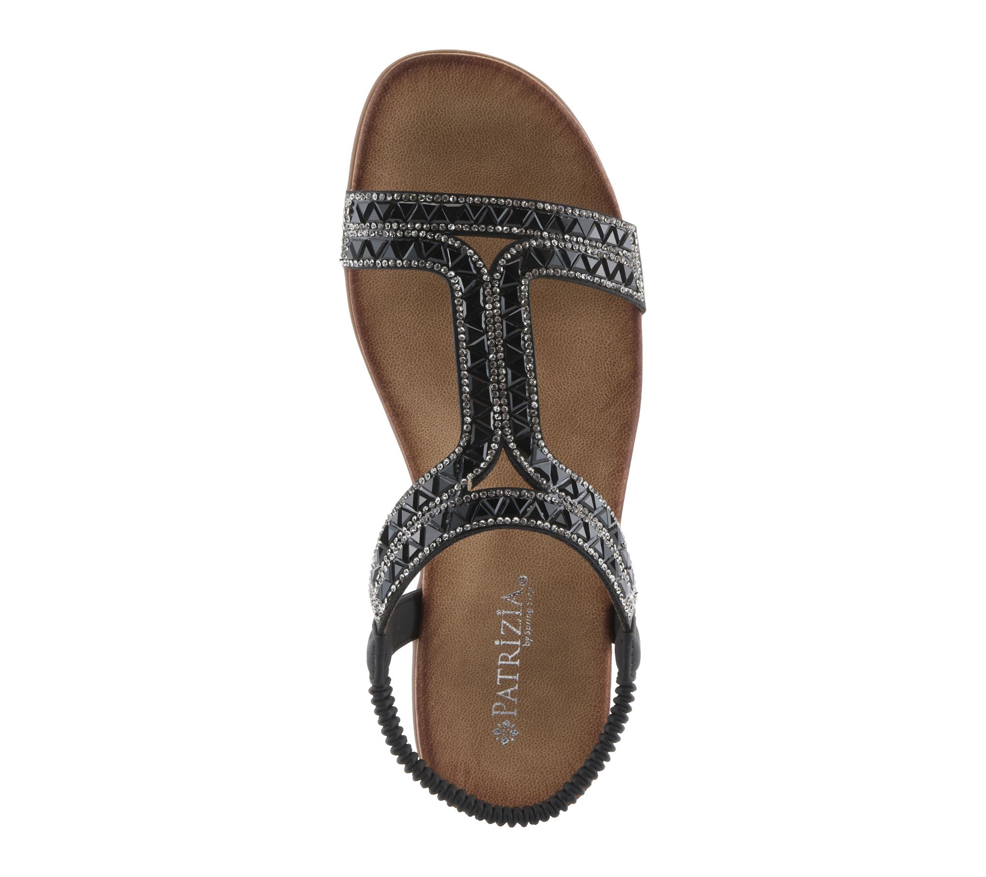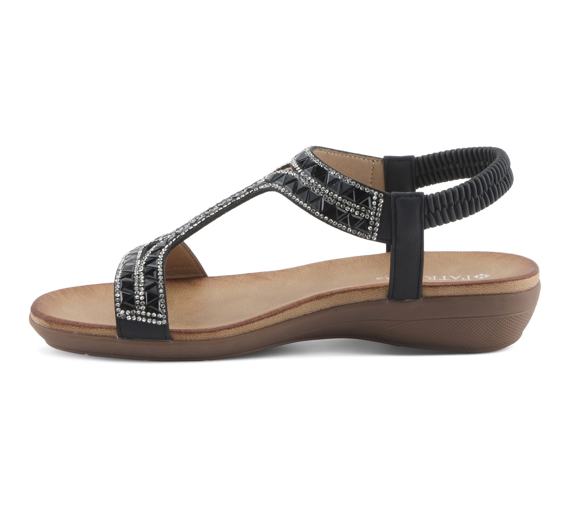 Add a little shimmer to your stride with these slip-on sandals, featuring geometric embellishments and a modern cut-out design. Whether you're sightseeing on vacation or dressing up your favorite jeans for an al fresco dinner, the cushioned insole and supportive demi wedge help keep you comfortable from day to night. From Patrizia by Spring Step.