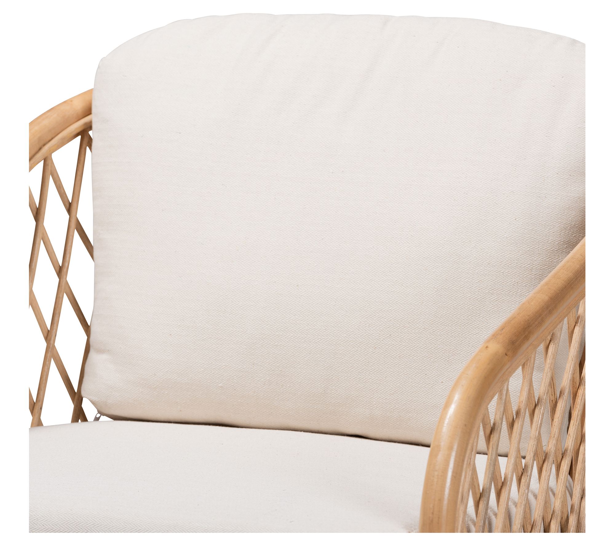 Patsy White Fabric and Natural Brown Rattan Armhair