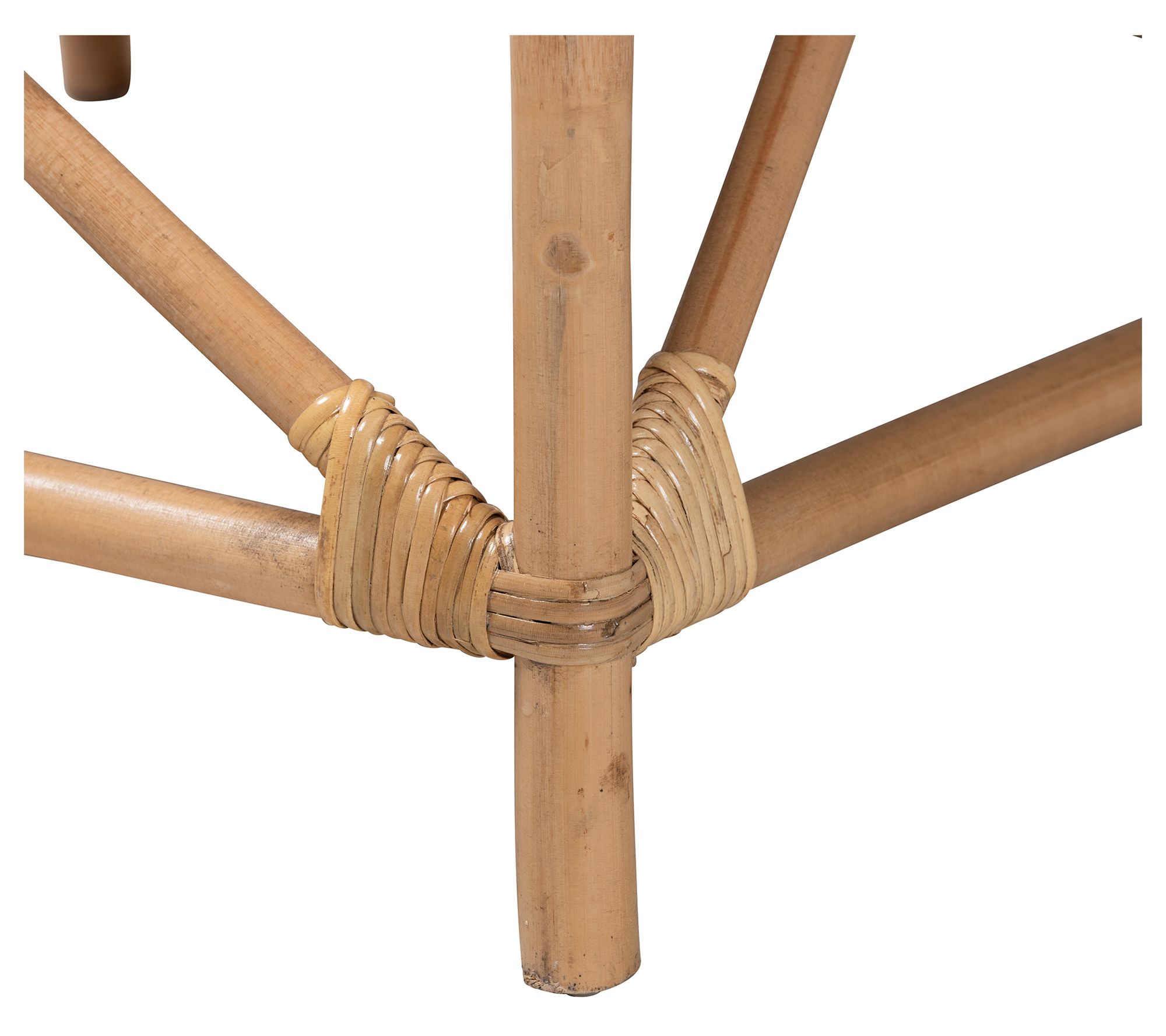 • Natural rattan, polyester fabric, and foam construction