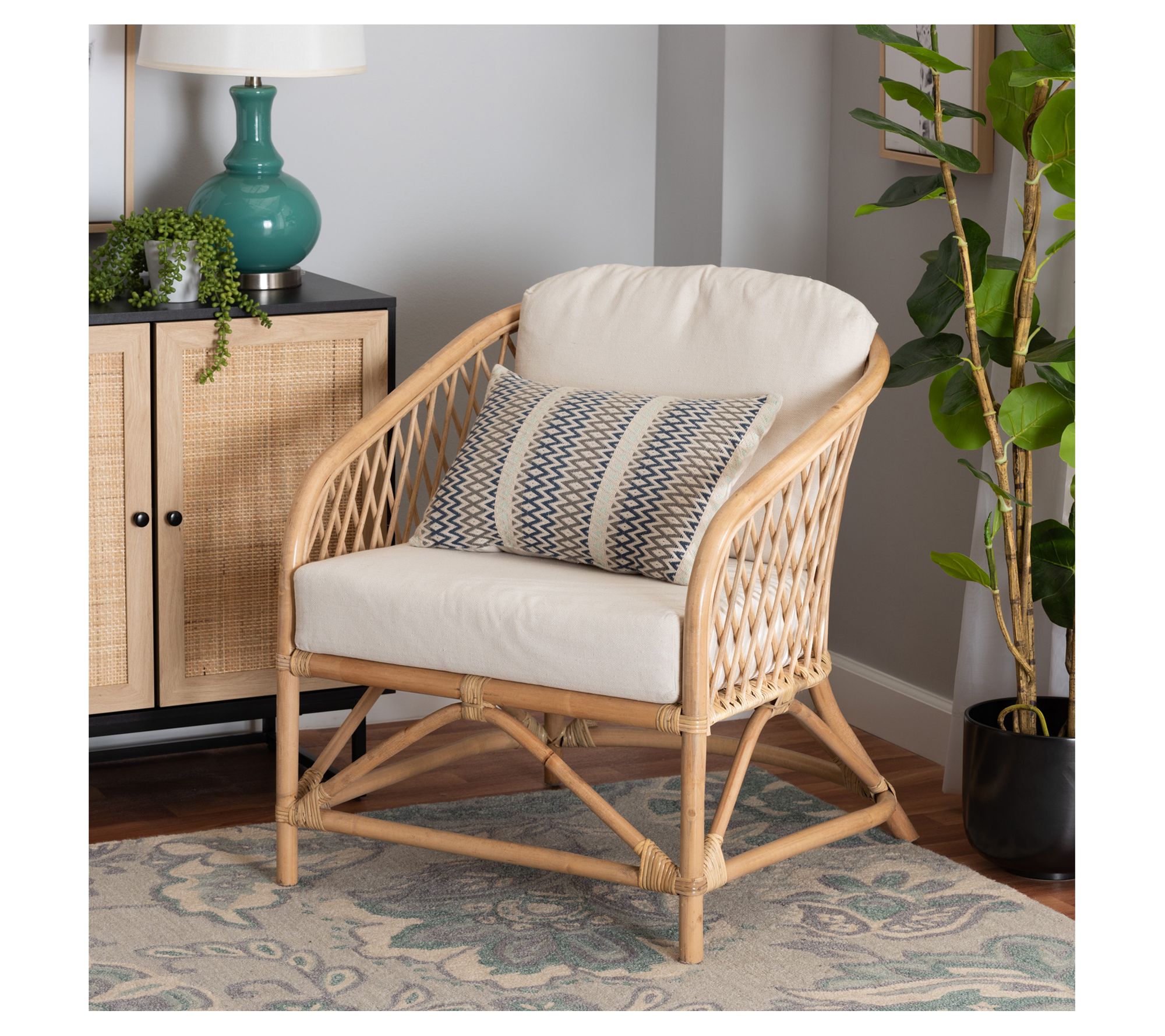 Provide attractive seating for you and your guests with this natural rattan Patsy armchair. It's the perfect spot to curl up with a good book or your favorite device. From Baxton Studio.