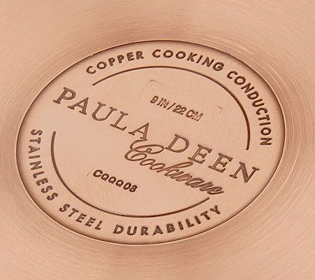 Saute, pan-fry, and brown to your heart's content with this two-piece skillet set. The round pans are designed with a copper impact bottom and a stainless steel body for even heat conduction. The riveted stick handles have a comfort grip for easy use. From Paula Deen.