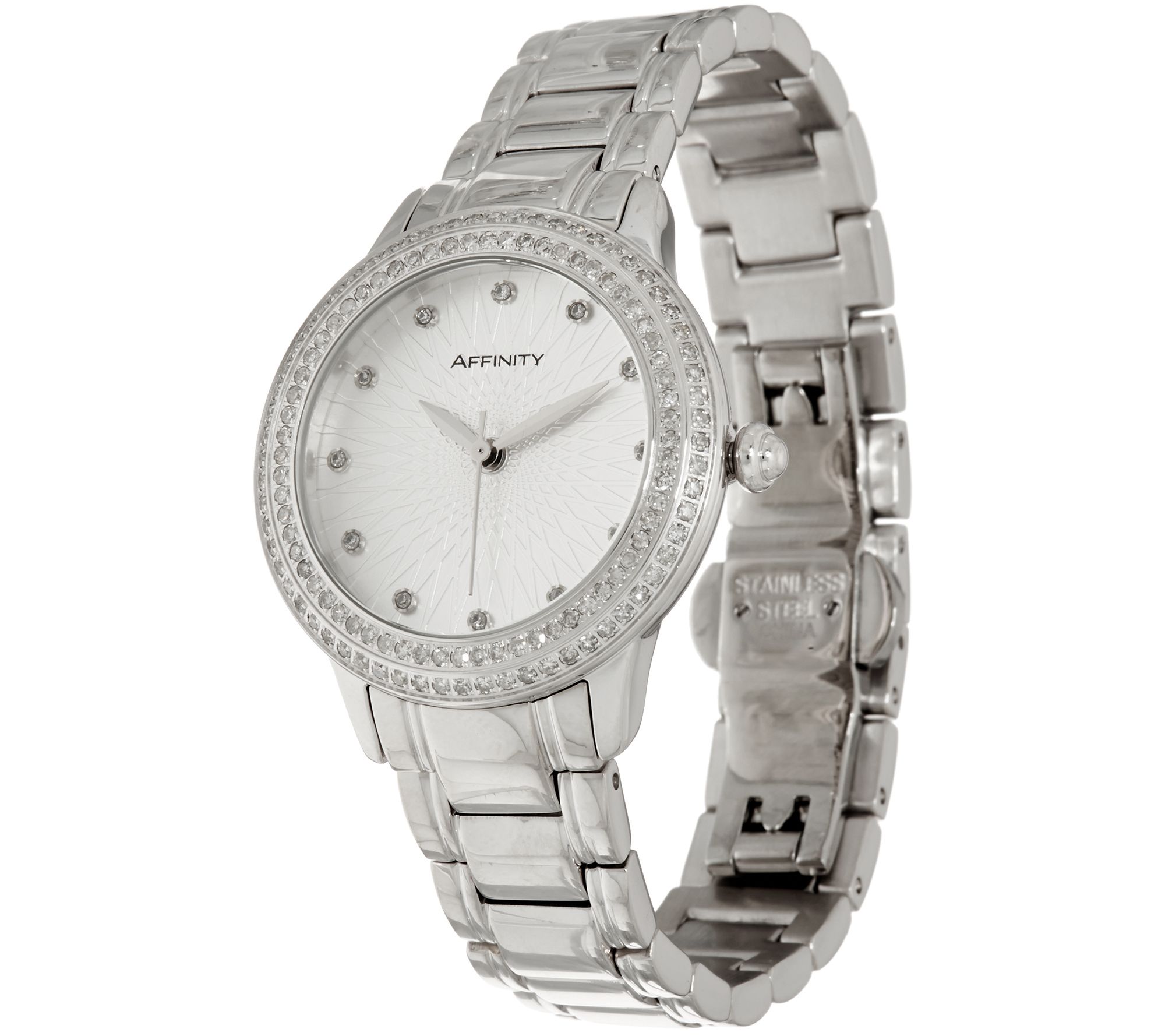 Pave' Round Diamond Watch, Stainless Steel 1.00 cttw, by Affinity