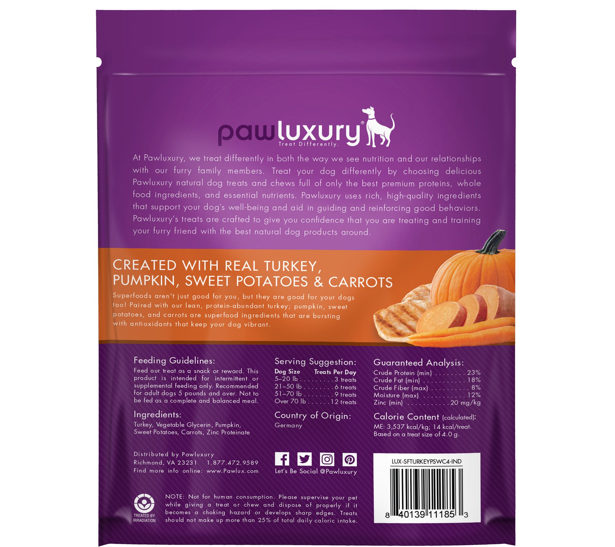 Give your dog a tasty treat with these jerky-cut turkey bites. From Pawluxury.