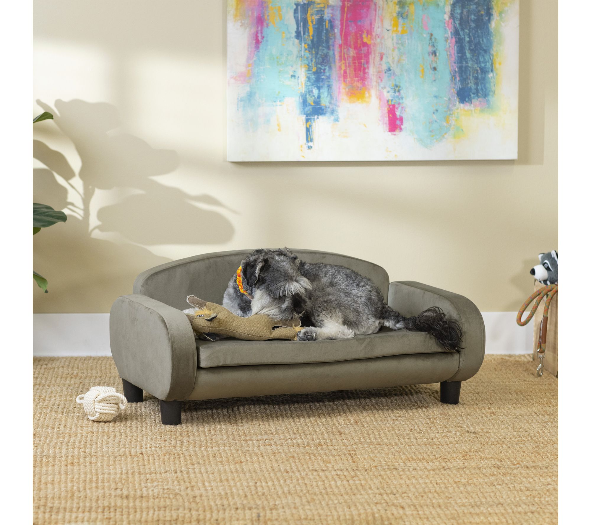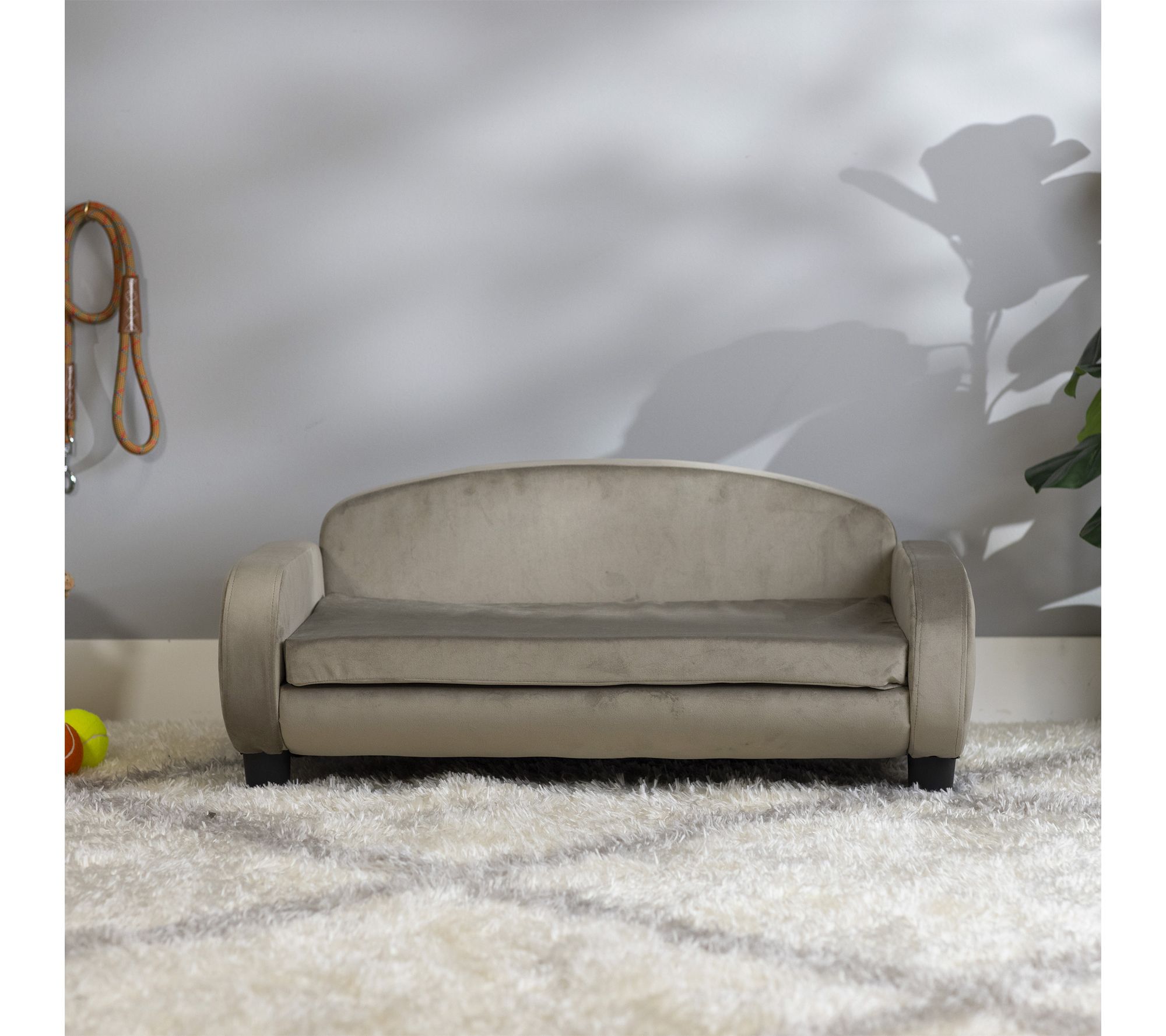 Give your furry companion a cozy haven of their own with this stylish modern pet couch. Crafted to blend seamlessly with your decor, its plush cushioning and raised edges offer comfort and security -- creating an inviting lounge for restful naps or afternoon lounging. The removable, machine-washable cover helps you keep their space fresh with ease. From Paws & Purrs.