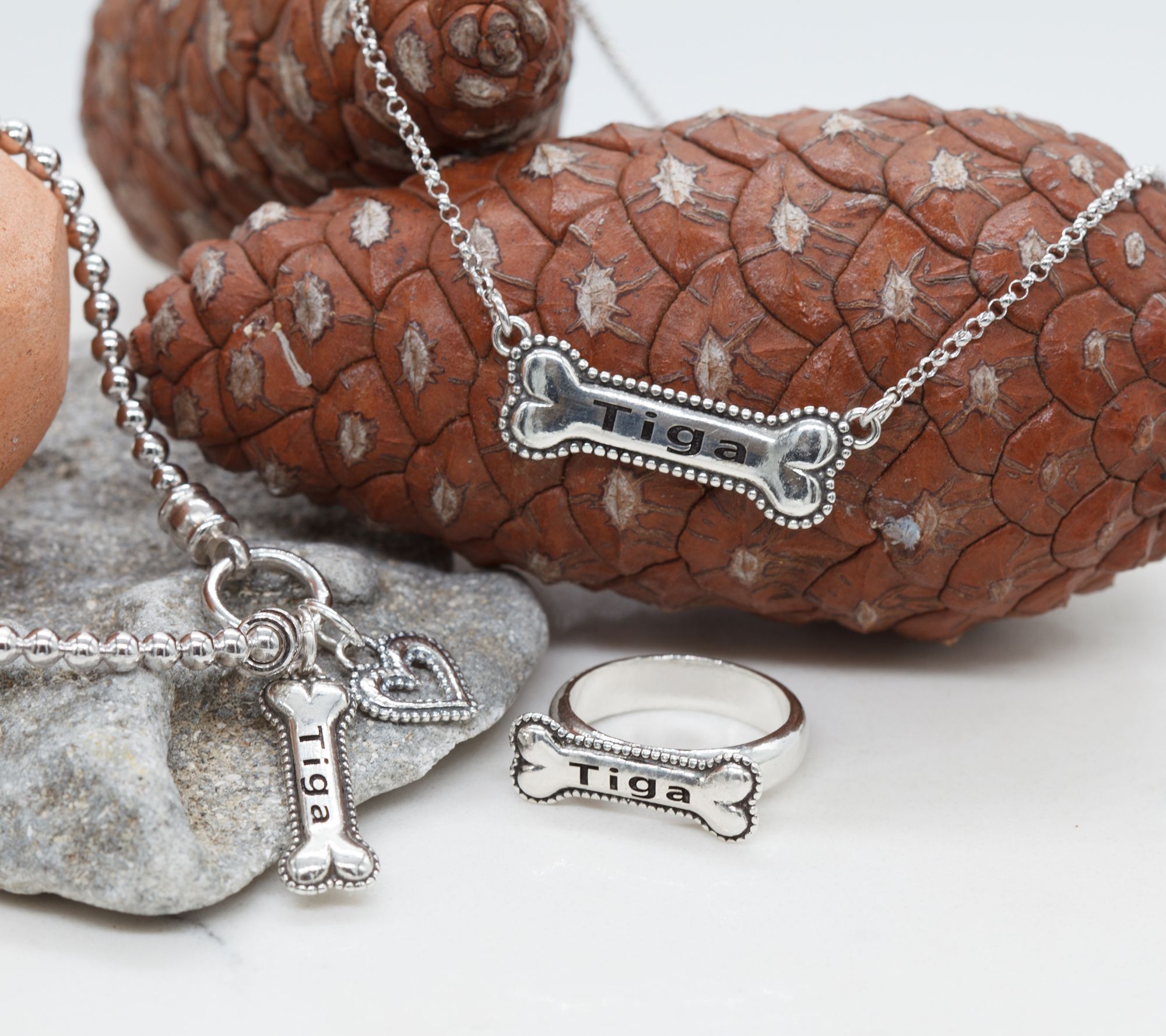 Celebrate your furry friend with this personalized sterling silver dog bone necklace that says it all. From Or Paz® Sterling Silver Jewelry.