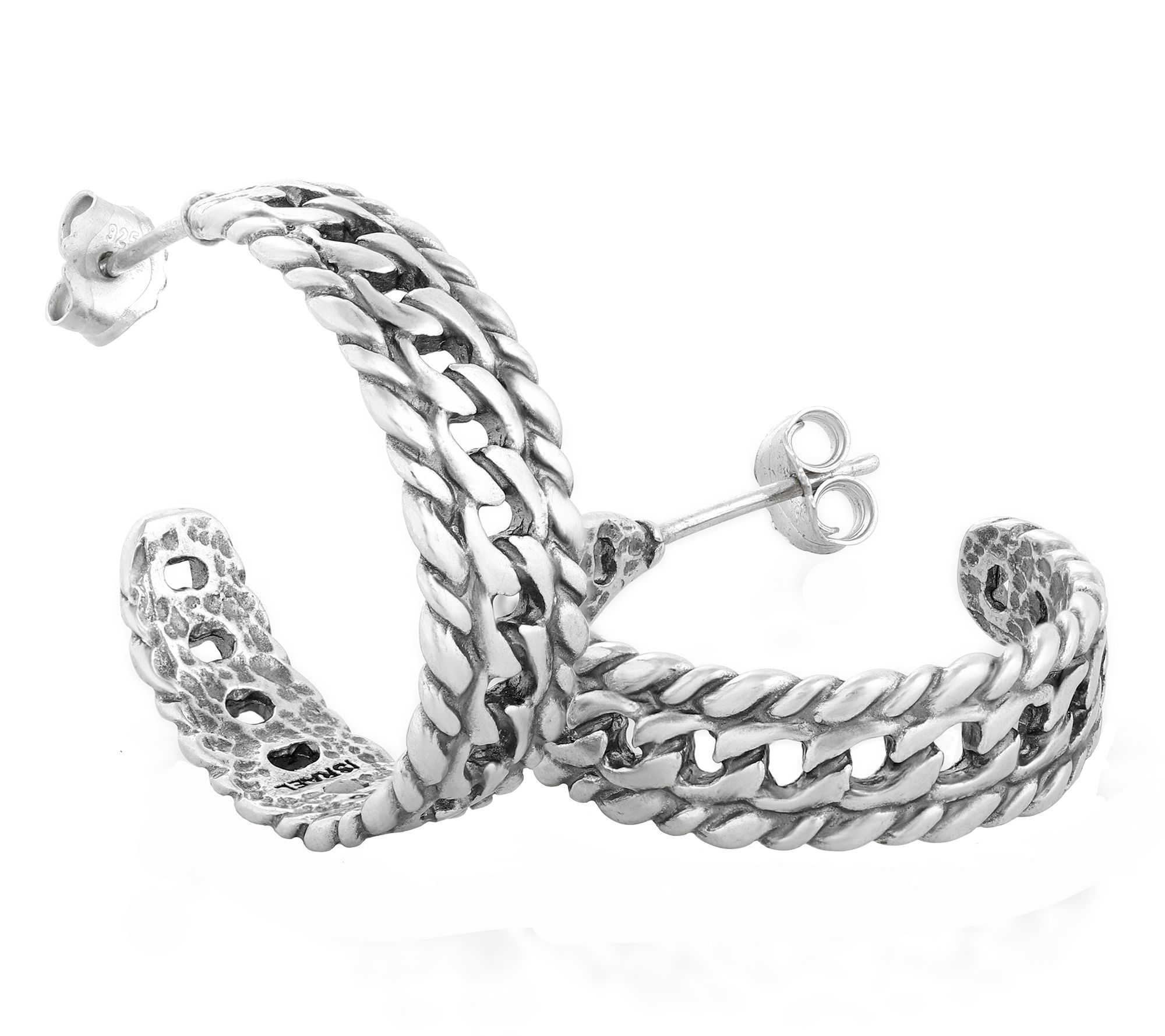 Or Paz Sterling Silver 1" Chain Design Hoop Earrings