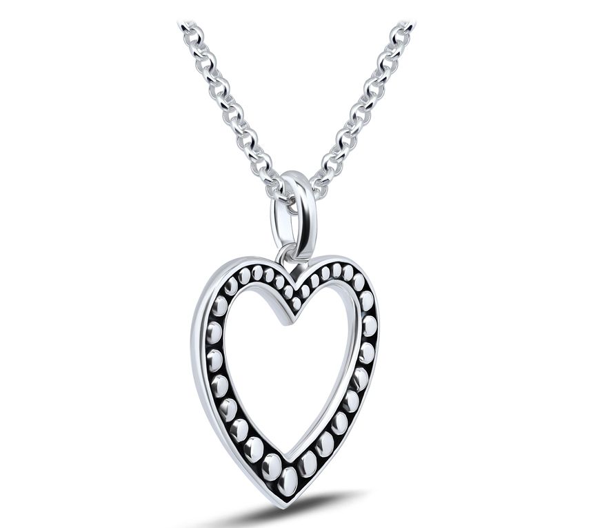 Or Paz Sterling Silver Beaded Open Heart Pendant w/ Chain