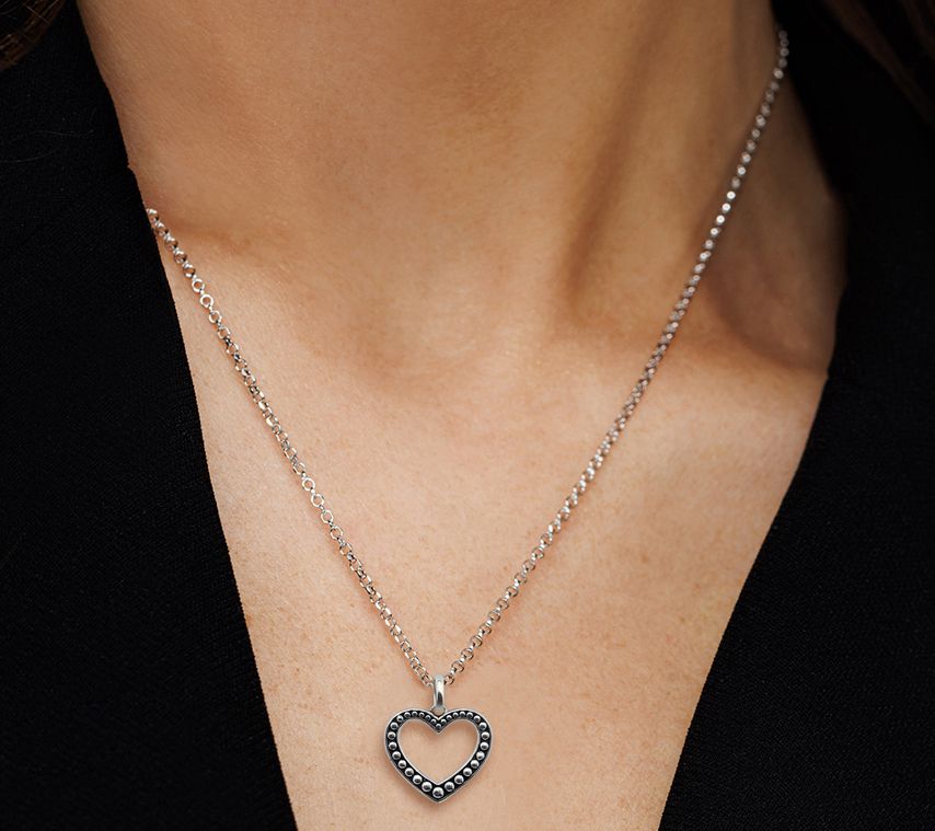 Perfect for any occasion, this sterling silver beaded open heart pendant necklace adds a touch of elegance to your ensemble. The oxidized finish enhances the detailed beaded texture, radiating timeless charm. Whether you're heading to a casual brunch or a formal event, this necklace is an effortless way to elevate your look. From Or Paz.