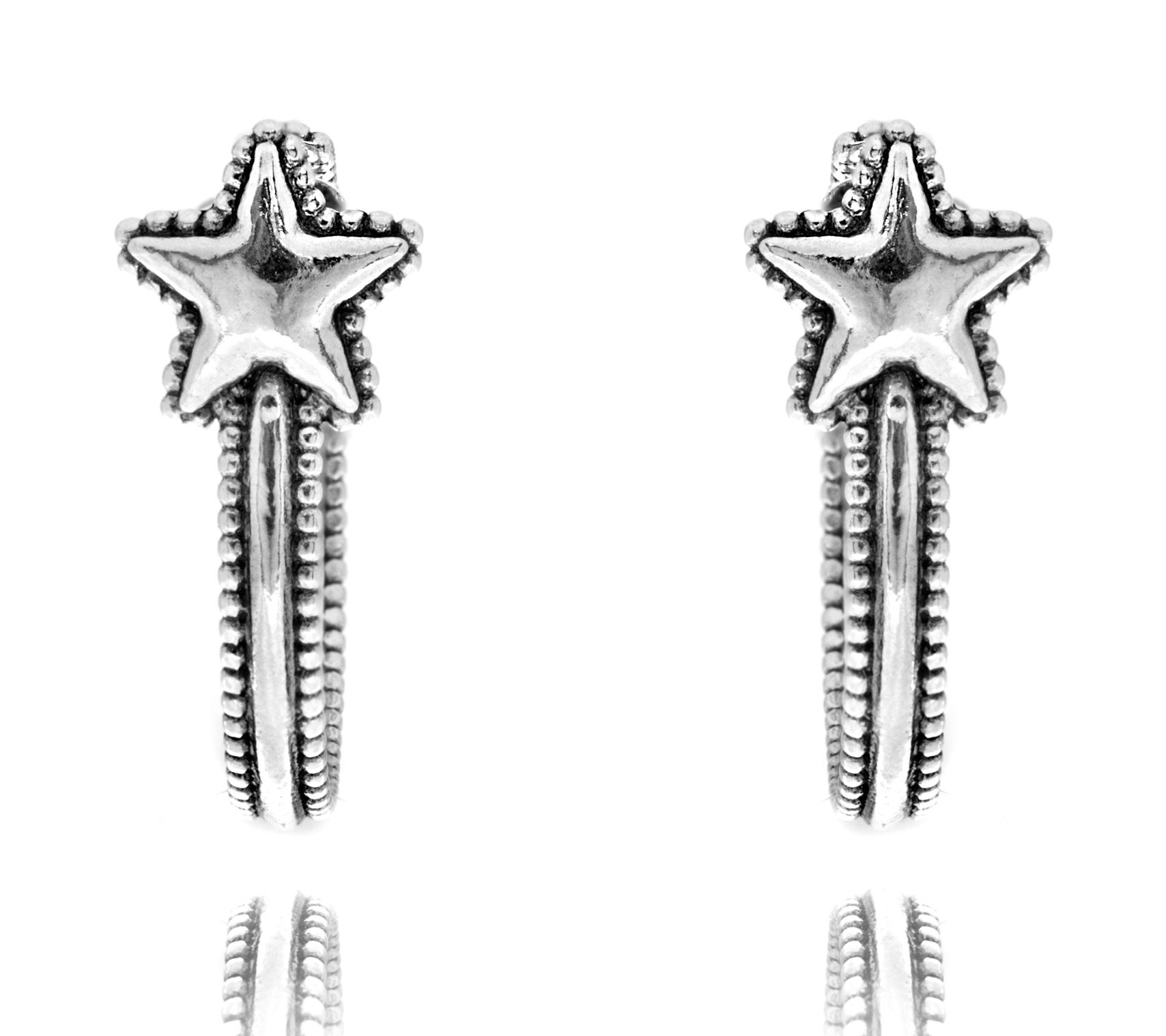 Or Paz Sterling Silver Beaded Star Hoop Earring s