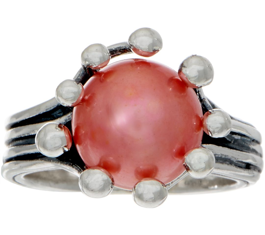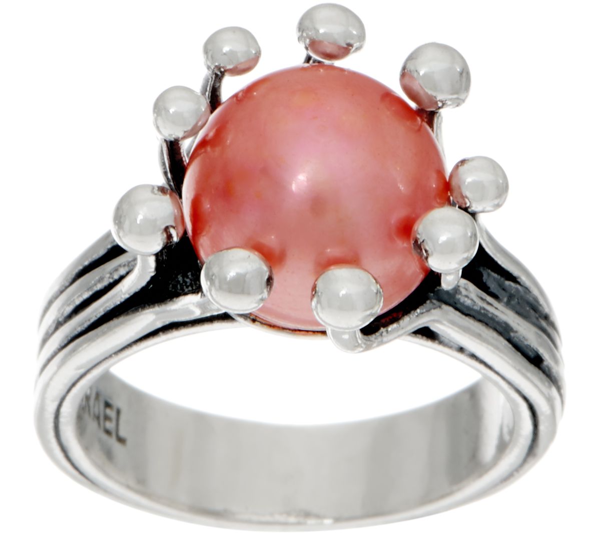 A classic cultured freshwater button pearl ring gets new attention with a halo of beaded prong settings surrounding it. From Or Paz(R) Sterling Silver Jewelry.