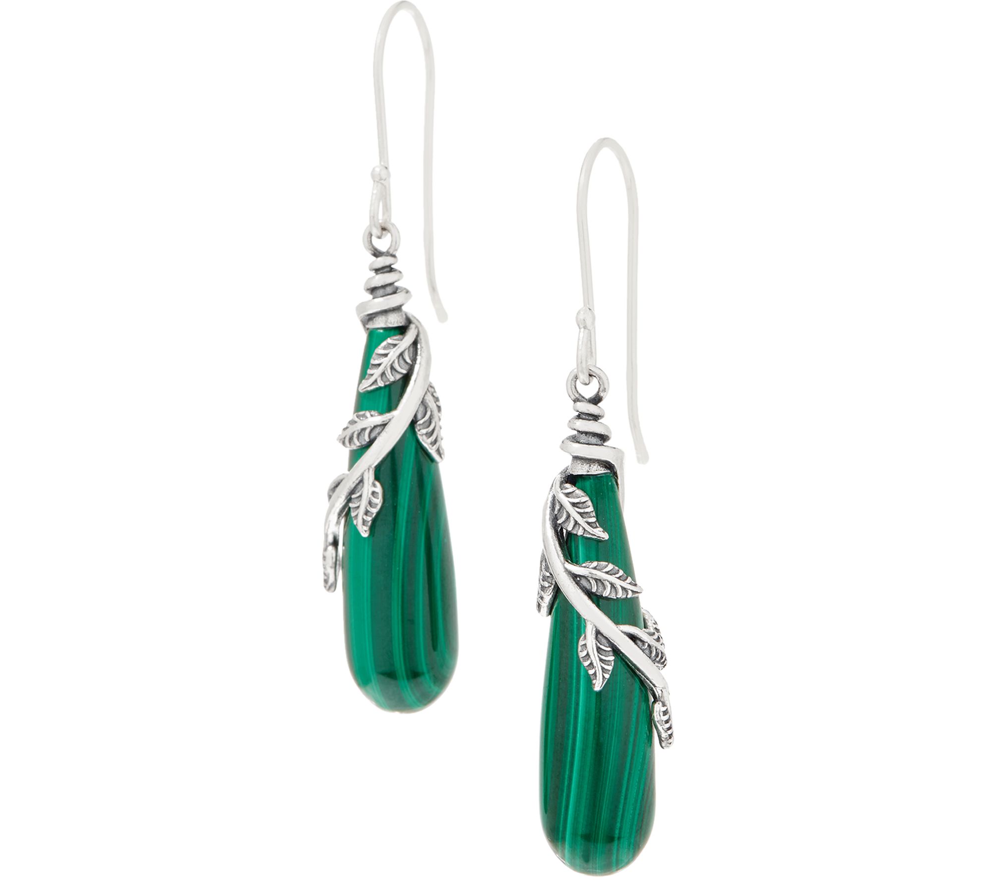 An overlay of sterling silver leaves adds an eye-catching twist to these elongated gemstone drop earrings. From Or Paz® Sterling Silver Jewelry.