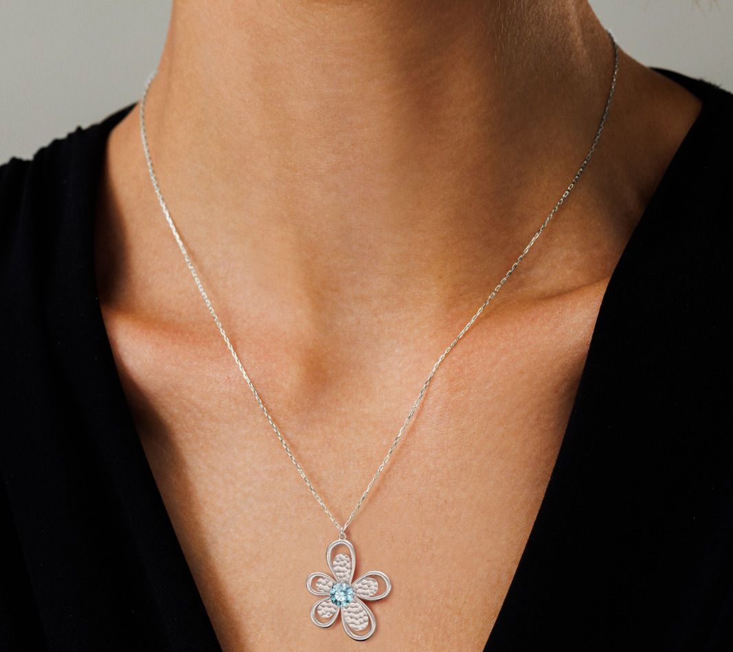 Or Paz Sterling Silver Gemstone Flower Pendantw/ Chain
