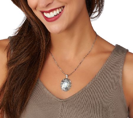 Eclectic yet elegant, this Or Paz pendant brings an endearing element to any ensemble. The elongated pendant glows with an oval cabochon in the center, with a feminine flourish from the decorative lace details on the frame and bail. From Or Paz(R) Sterling Silver Jewelry from Israel.