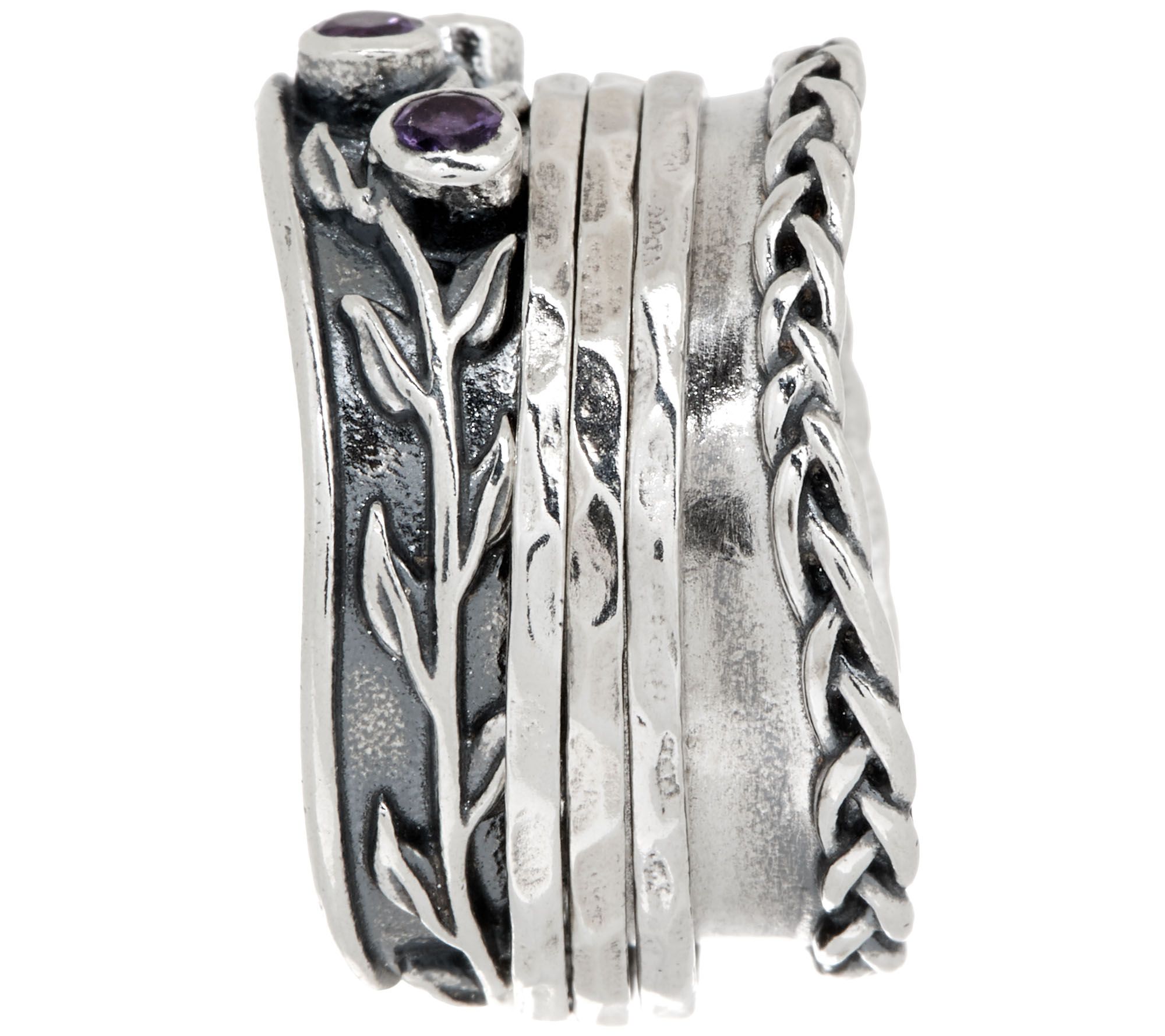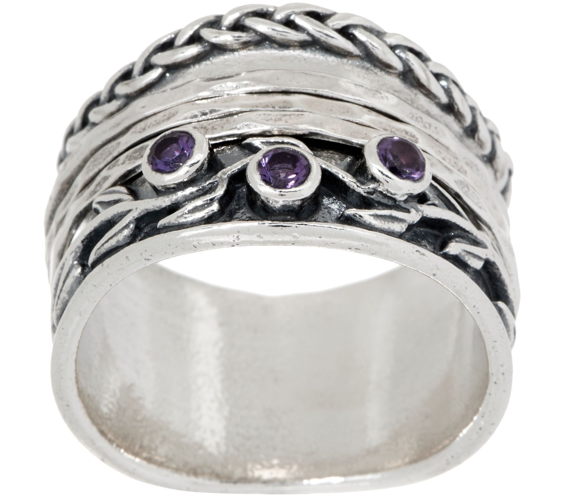 This detailed ring showcases an array of textures, with a touch of gemstone glam. From Or Paz® Sterling Silver Jewelry.