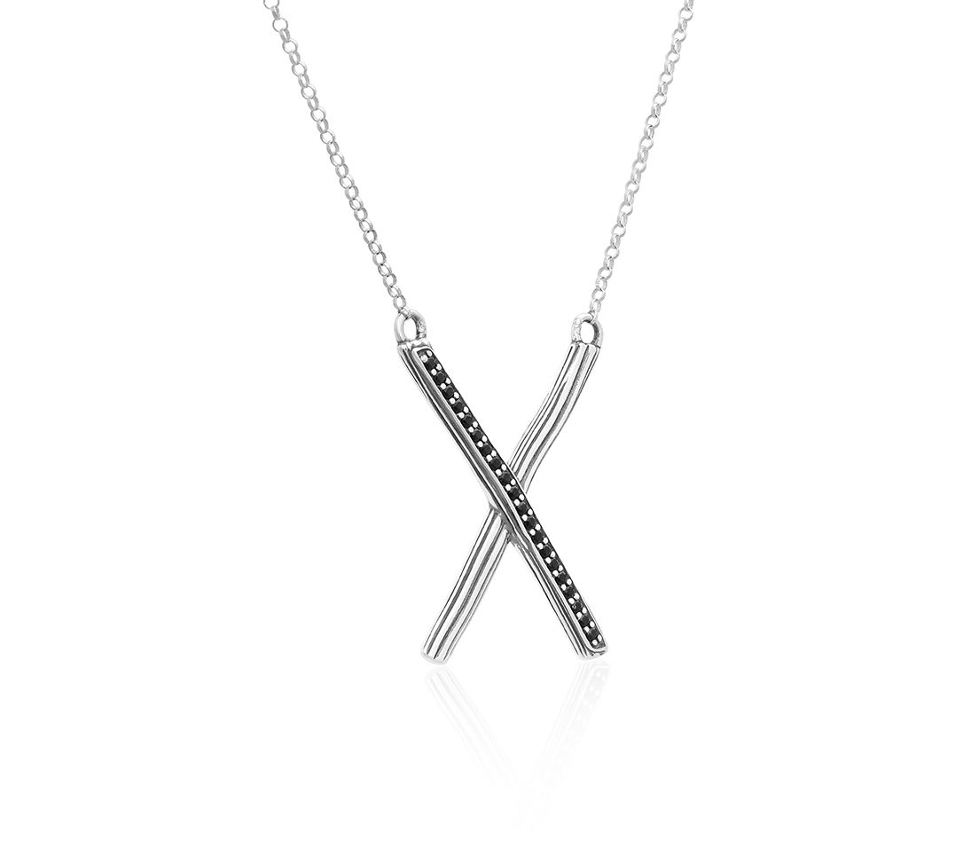 Elevate your wardrobe with this beautiful geometric necklace, showcasing an x-shaped pendant with glimmering gemstones that add sparkle to your look. From Or Paz® Sterling Silver Jewelry.