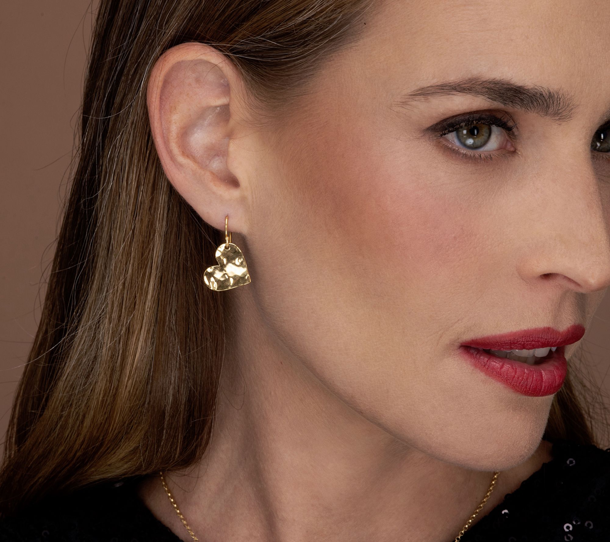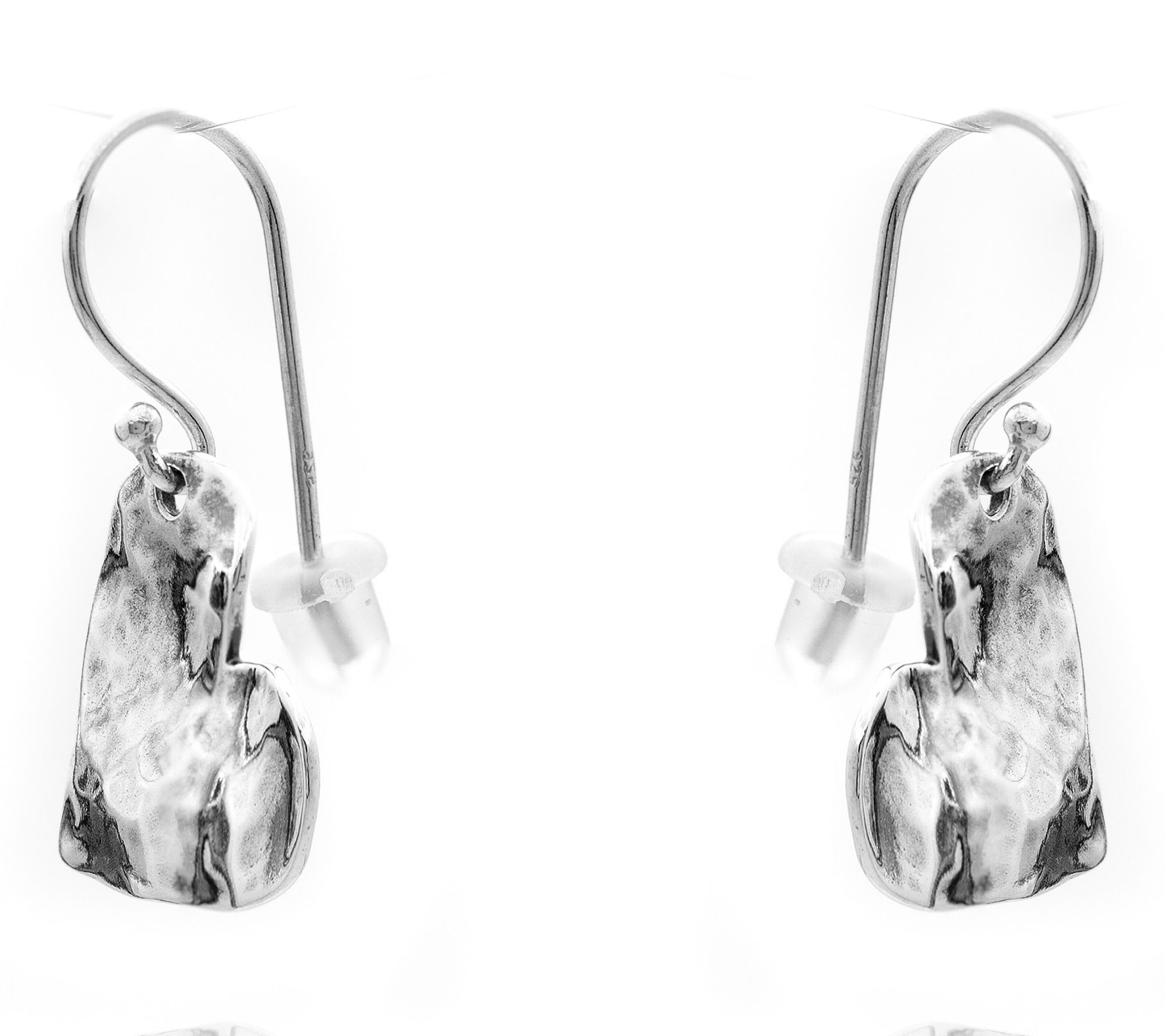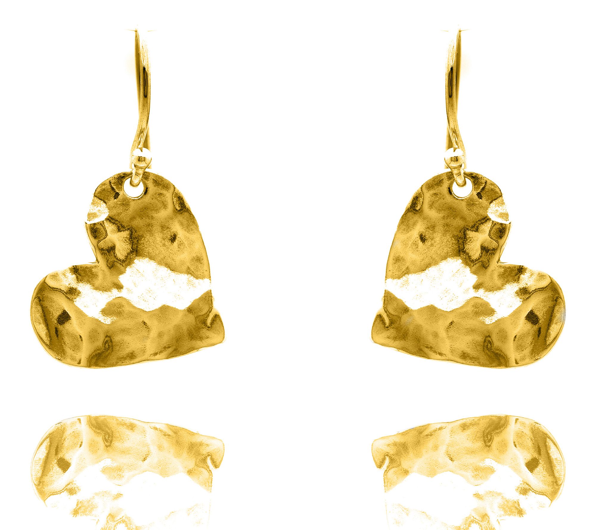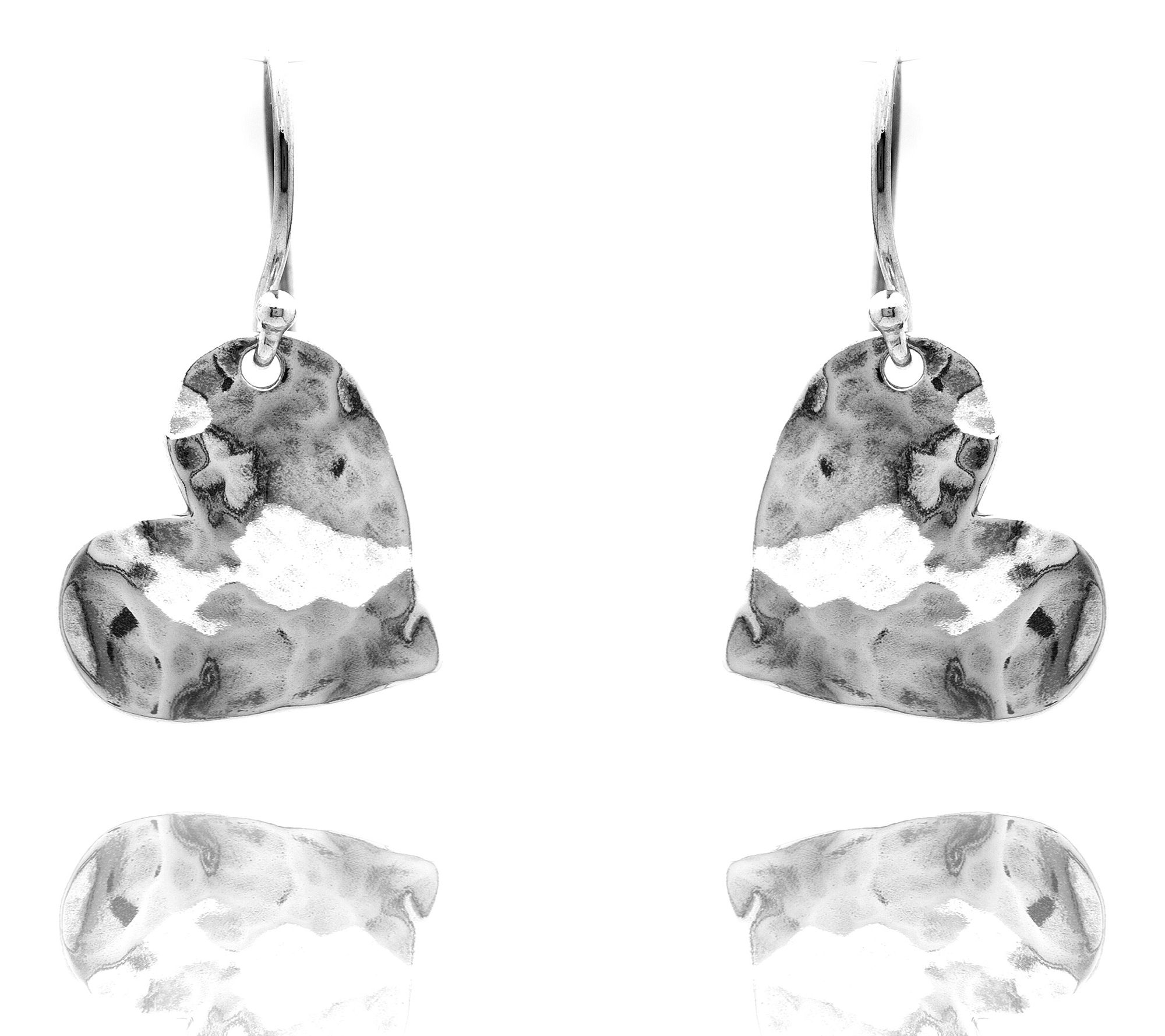 • Dangle design; hammer textured heart style; polished finish