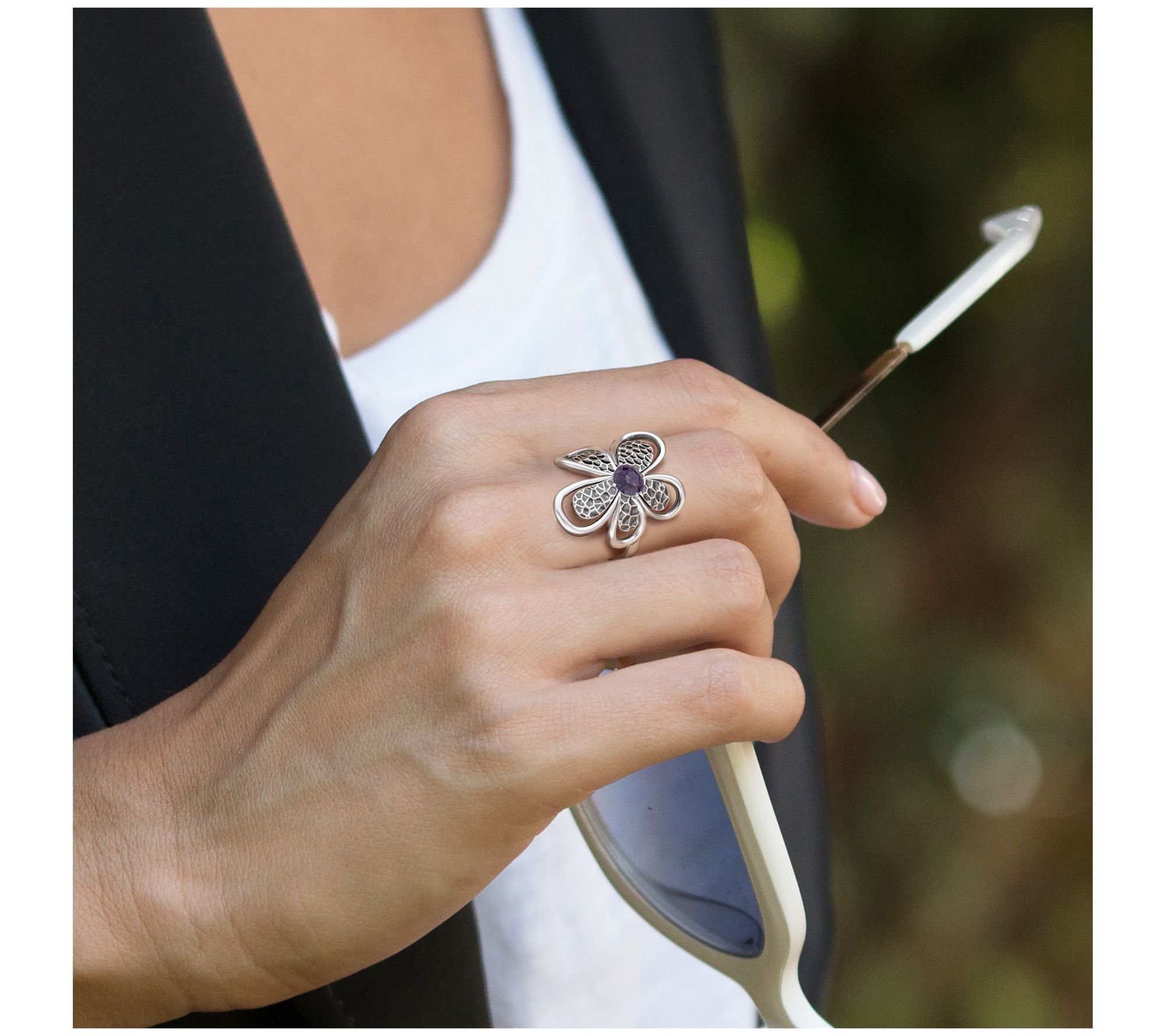 Accented with a vibrant gemstone, this sweet Or Paz flower ring also includes a hammered texture to complete the memorable look. From Or Paz.