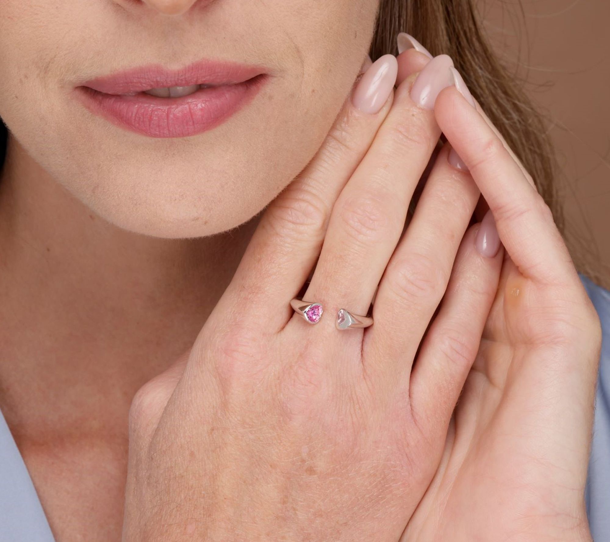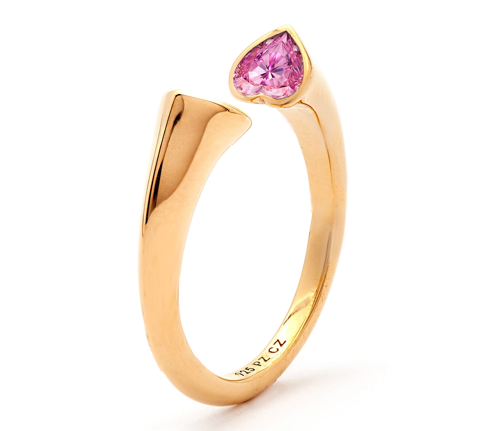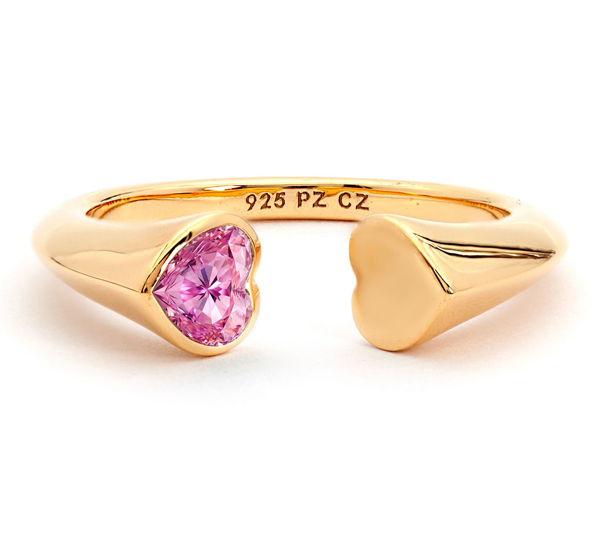 A sparkling symbol of affection, this heart cuff ring brings a touch of elegance to everyday moments or special celebrations. The soft glow of sterling silver or 14K yellow gold plating pairs beautifully with a heart-shaped pink cubic zirconia, letting you share your feelings in style. Let this thoughtful accent inspire love and warmth each time you wear it. From Or Paz®.
