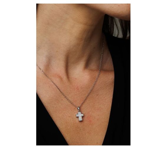 Give your outfit divine energy by accessorizing with this shapely cross pendant faced with an iridescent lab-created opal. From Or Paz.