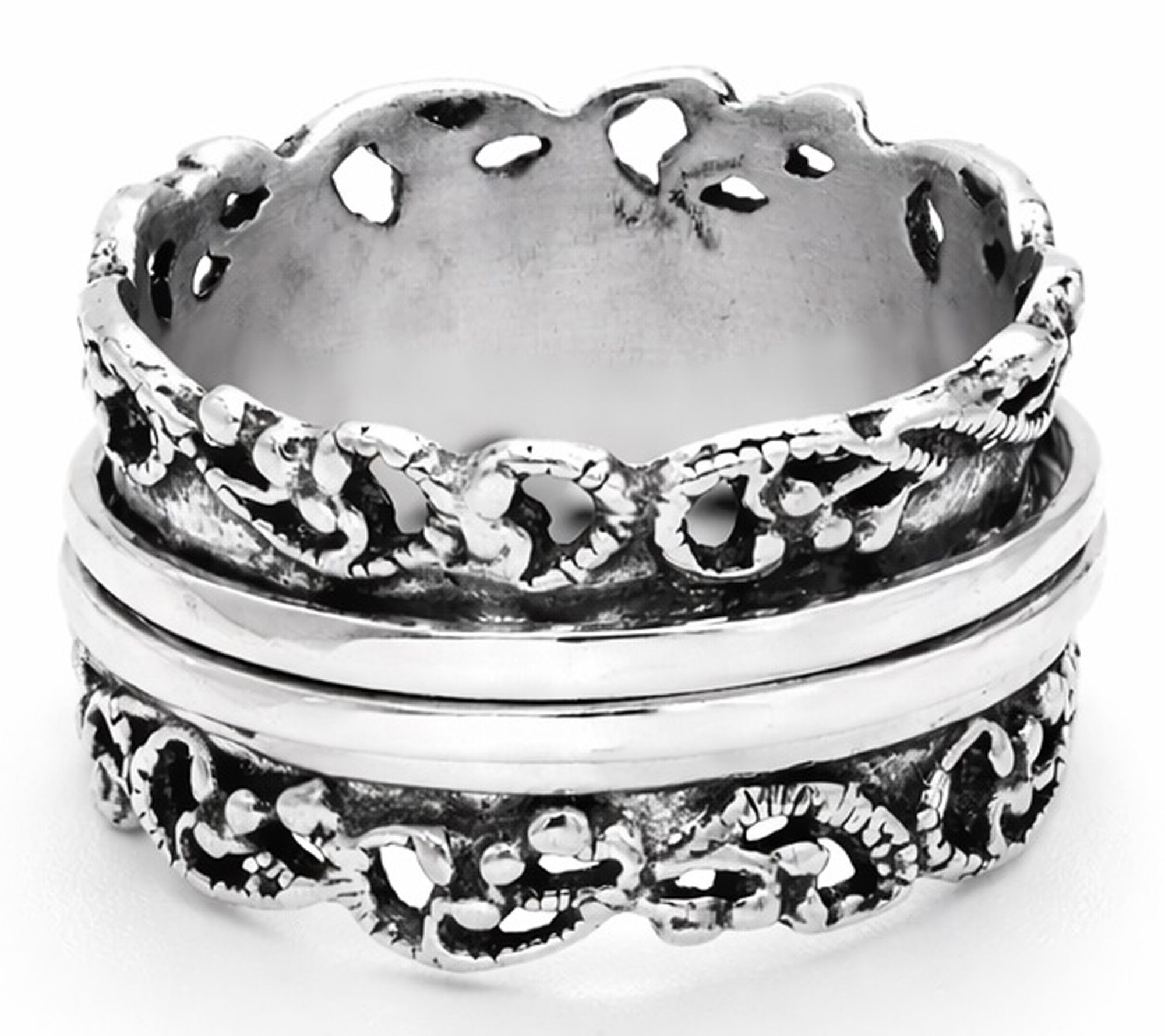 Or Paz Sterling Silver Lace Design Spinner Ring